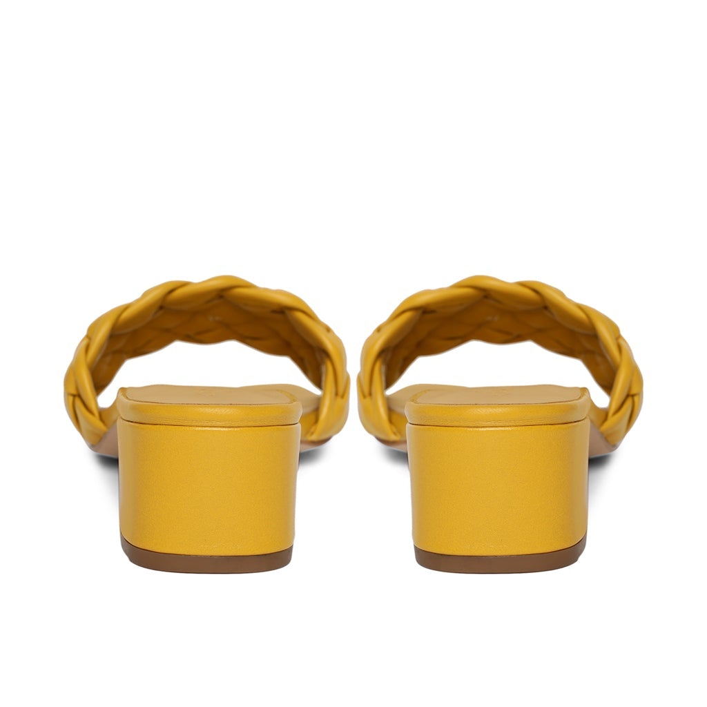 Saint Kate Yellow Leather Woven Mid Heeled Sandal