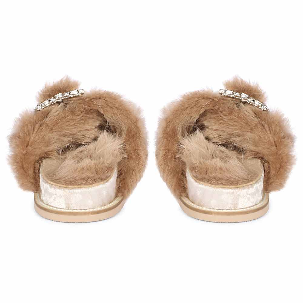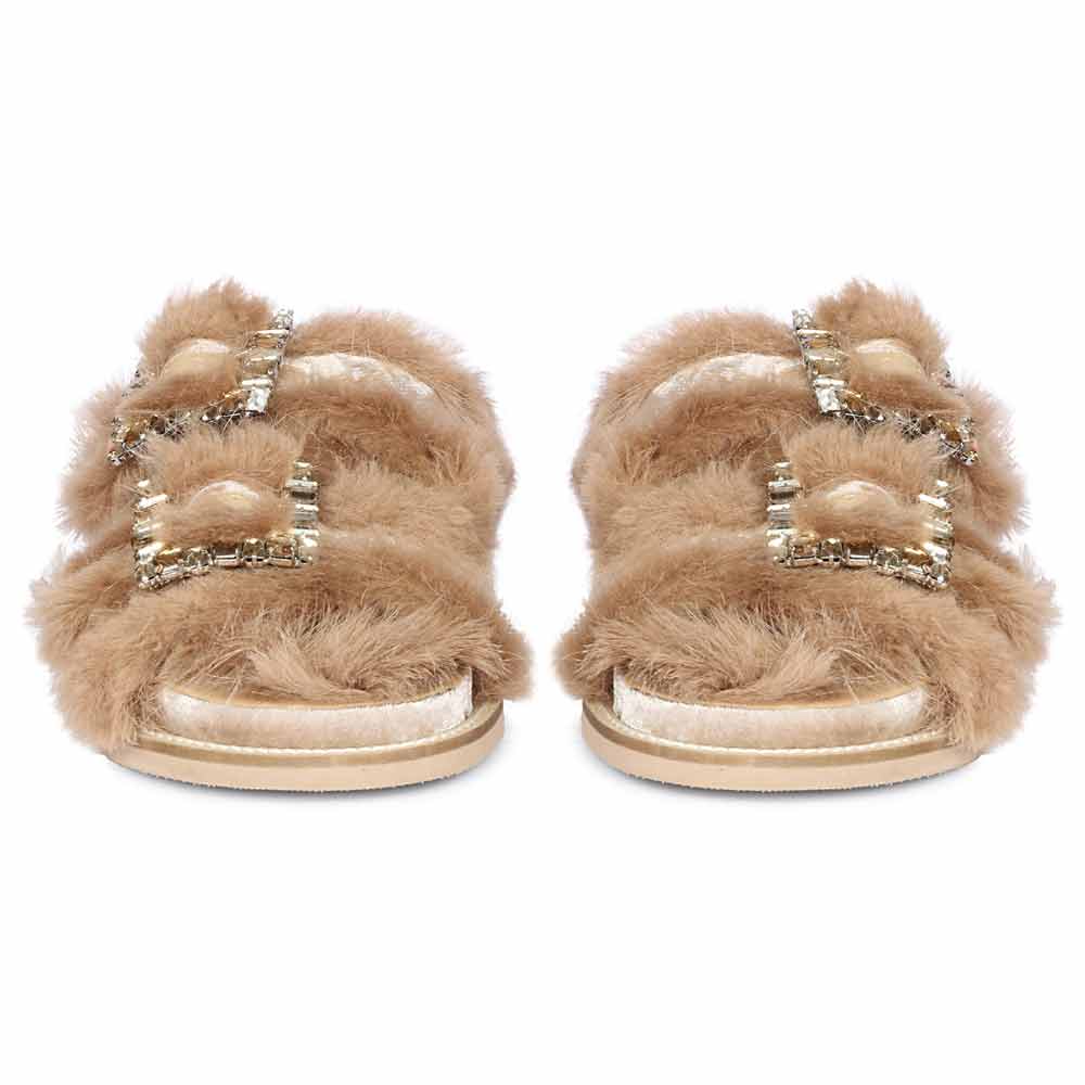 Saint Gemma Diamante Buckles Beige Fur Sandals
