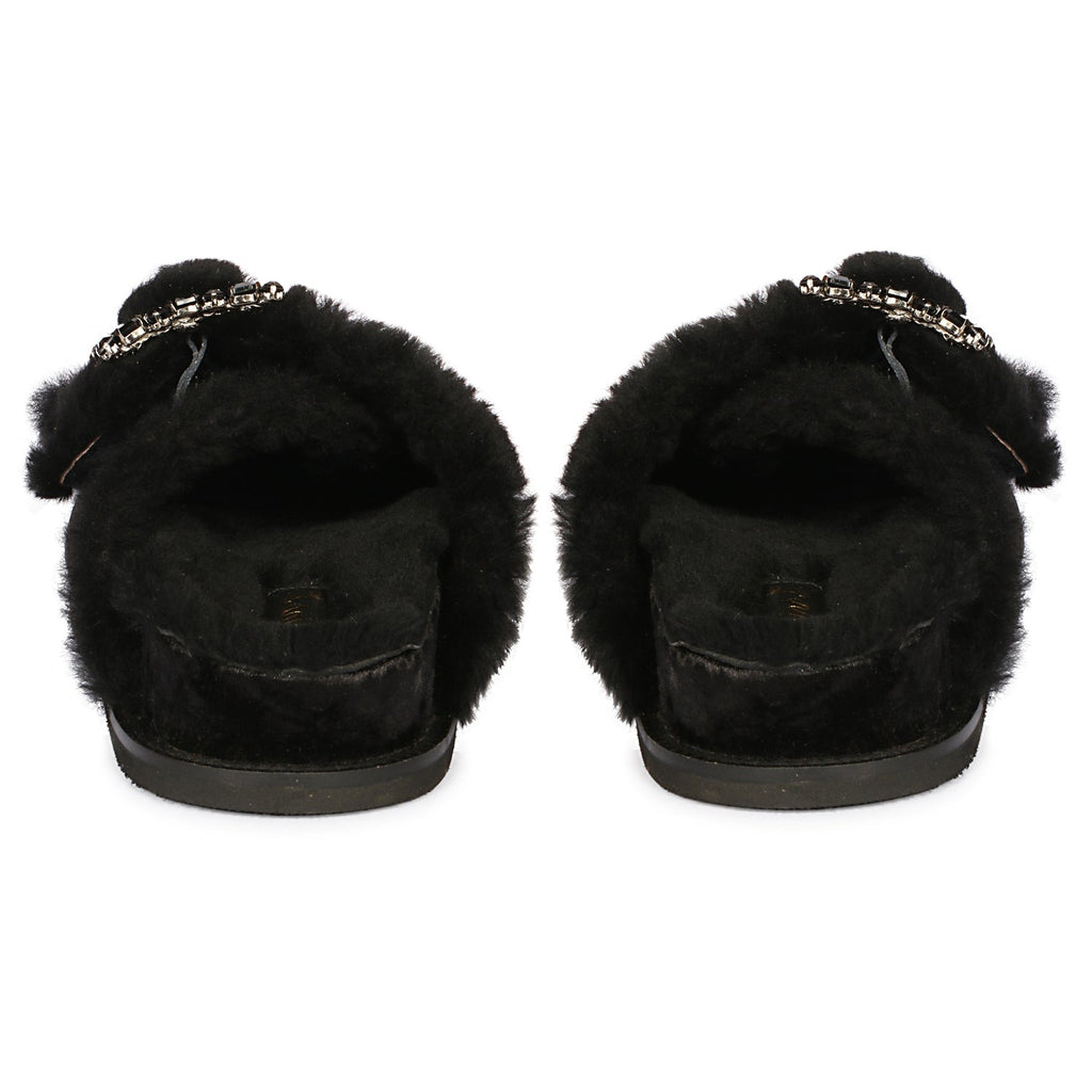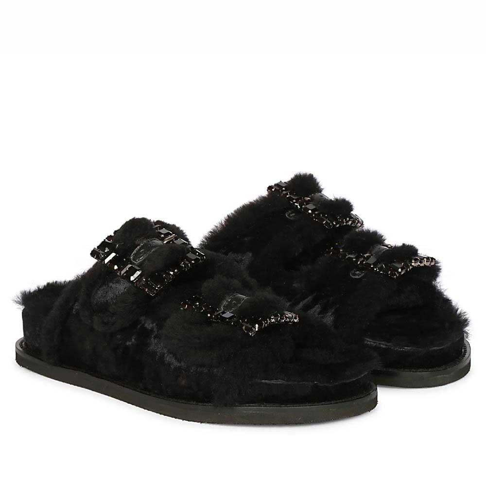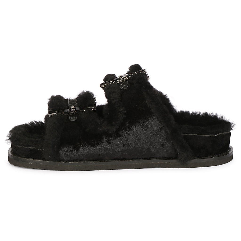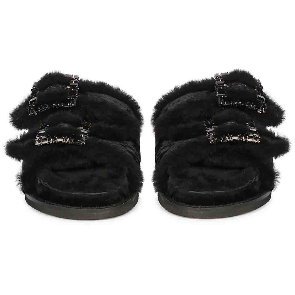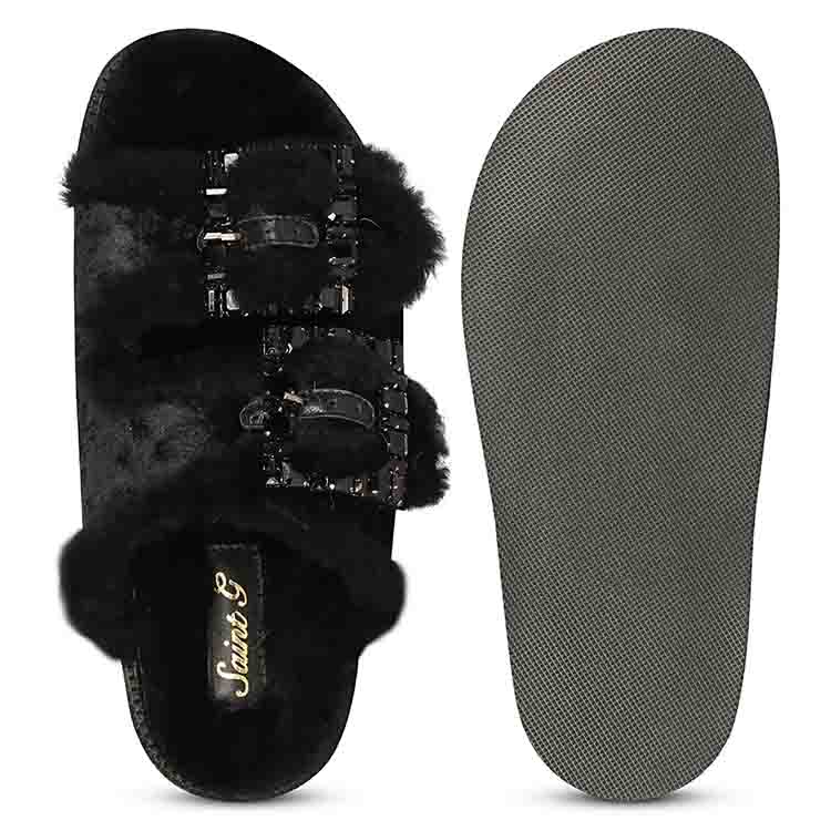 Saint Gemma Diamante Buckles Black Fur Sandals