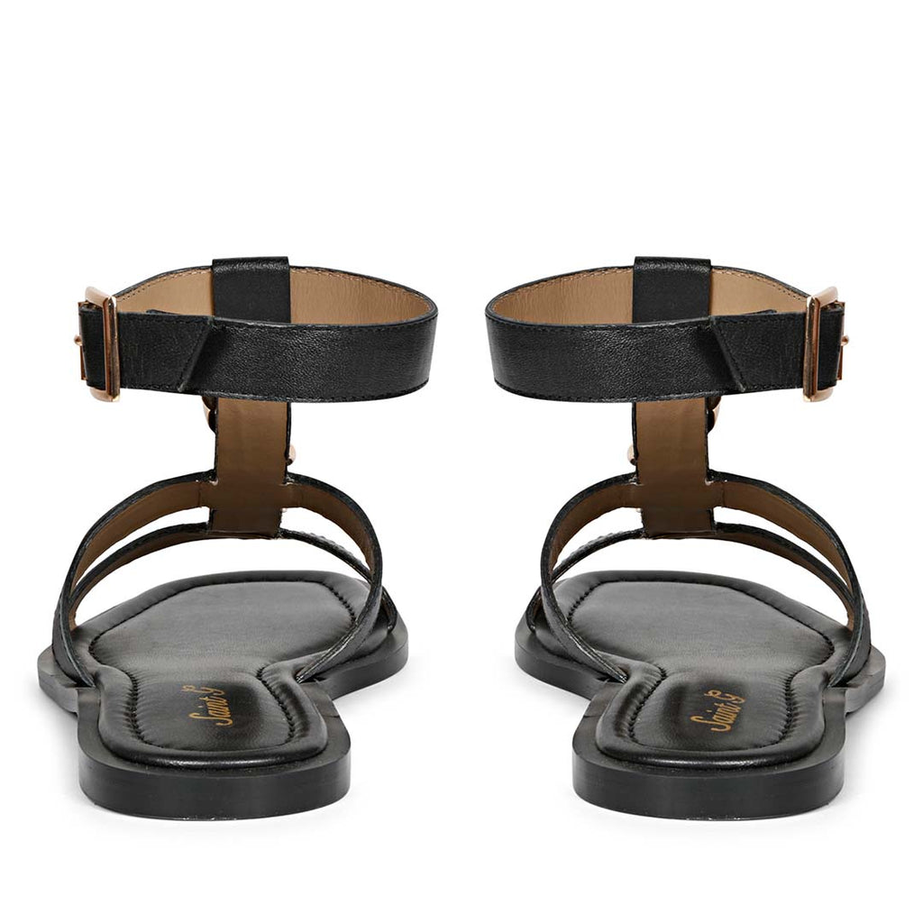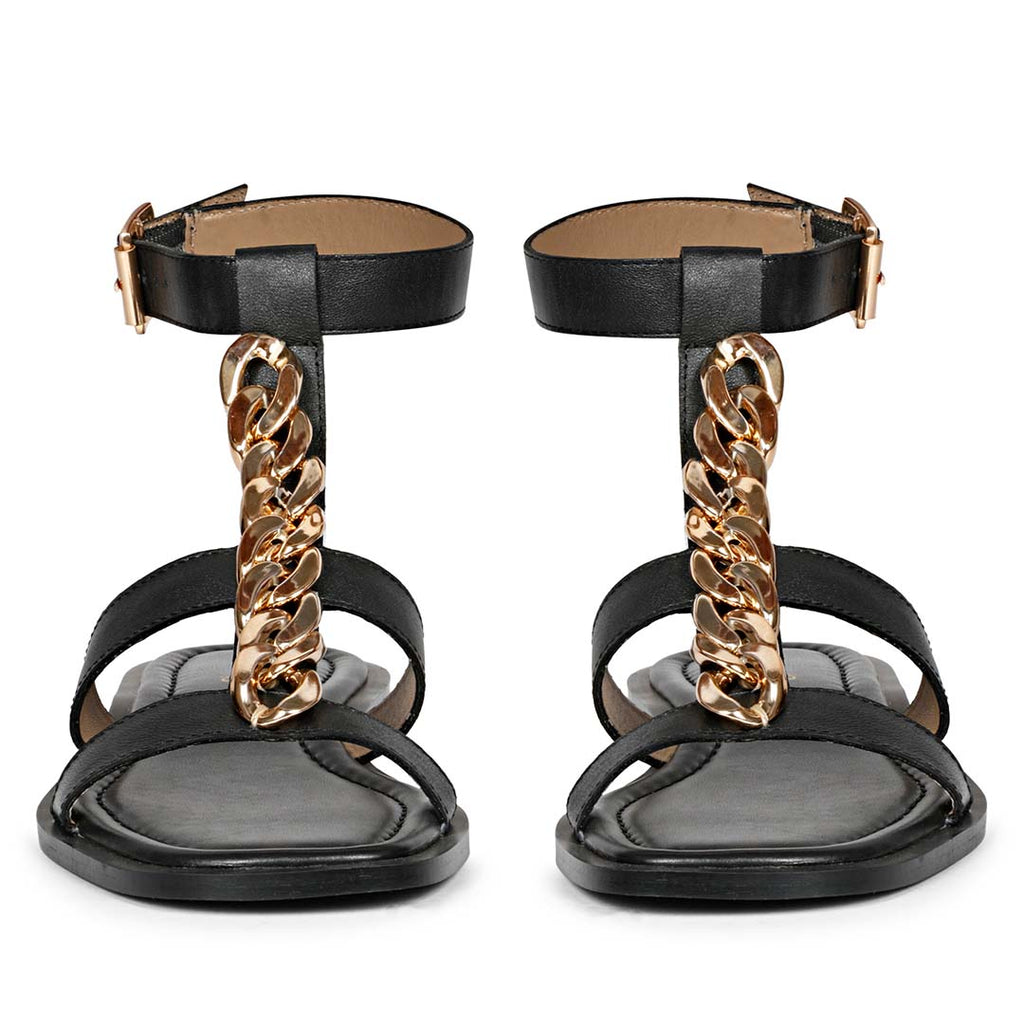 Saint Genesis Golden Chain Decor Black Leather Sandals