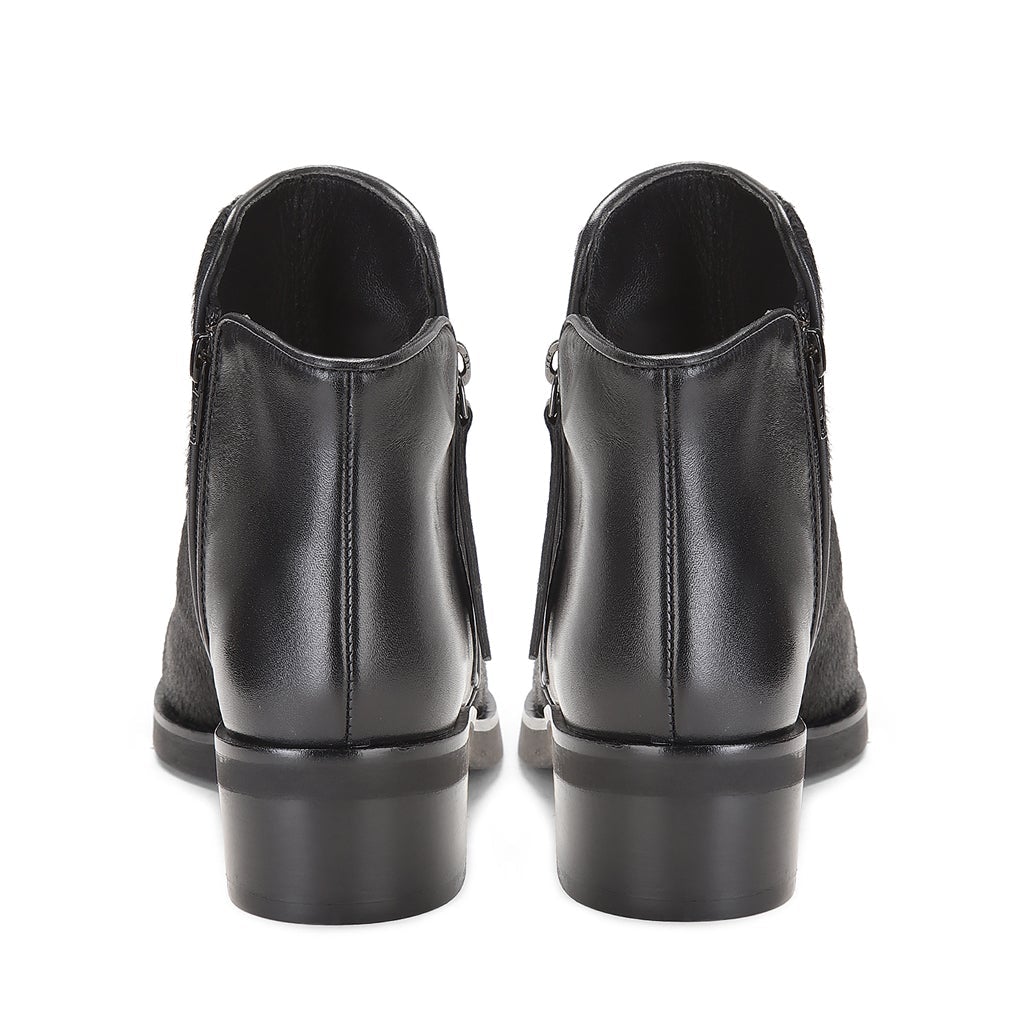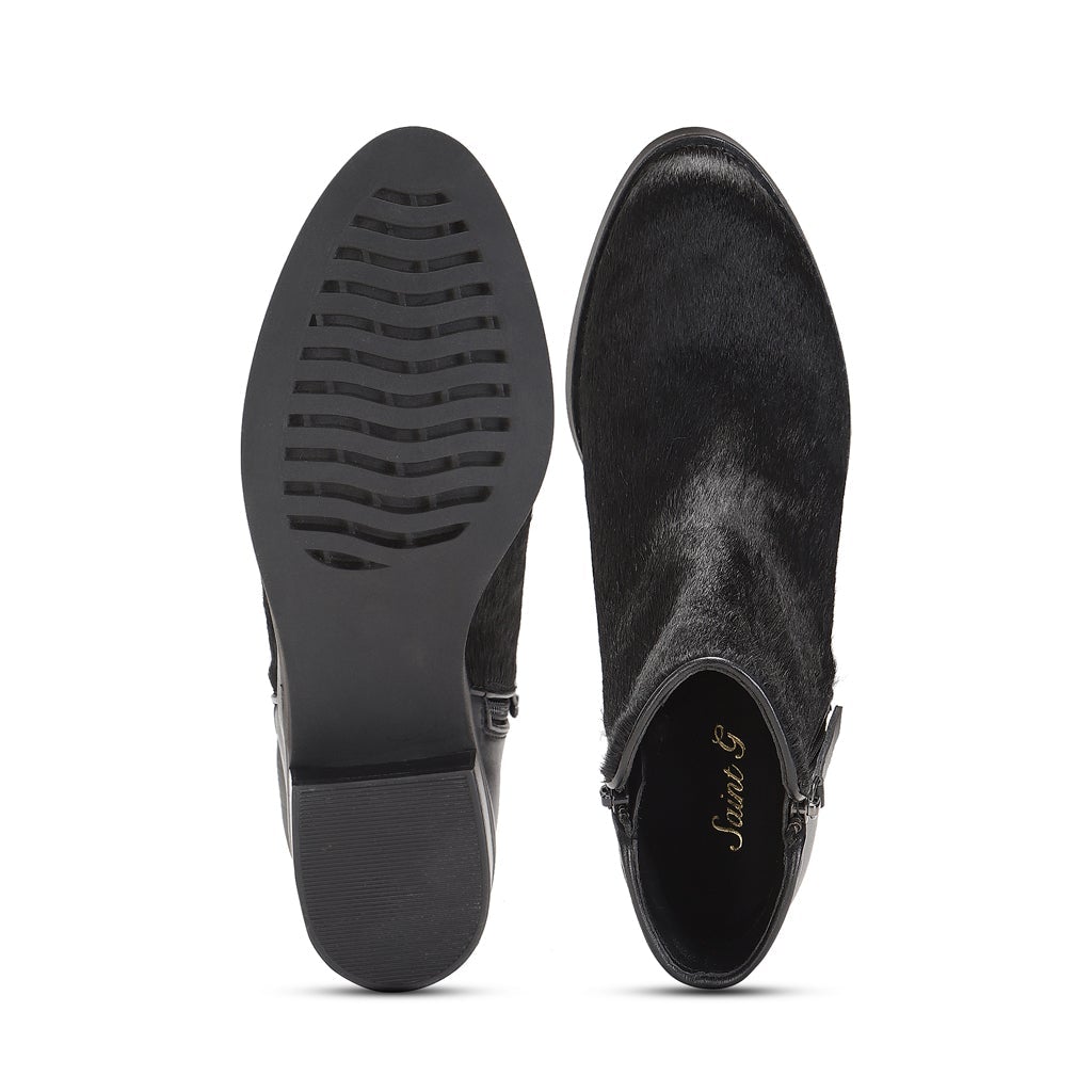 Saint Genevria Black Pony Hair Leather Ankle Boots