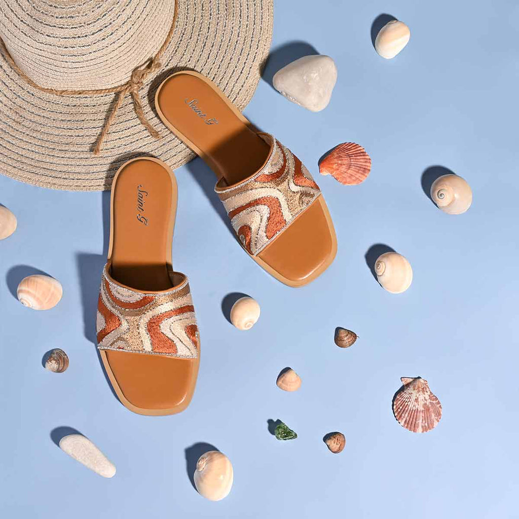 Georgia Hand Embroidered Brown Leather Flats