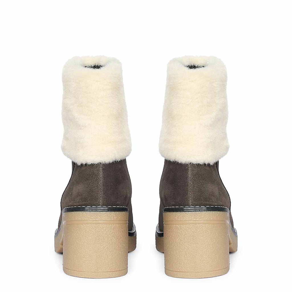 Saint Glacienne Charcoal Suede Leather Fur Cuff Ankle Boots
