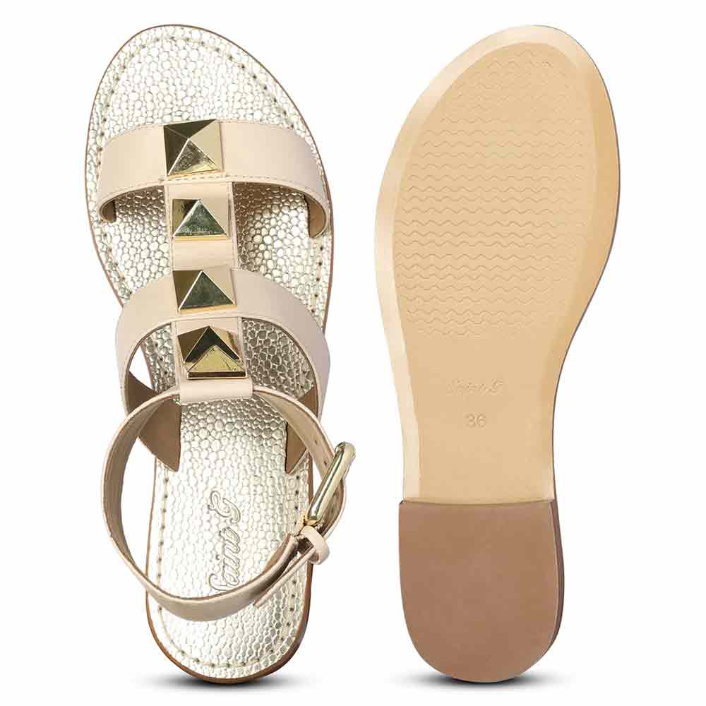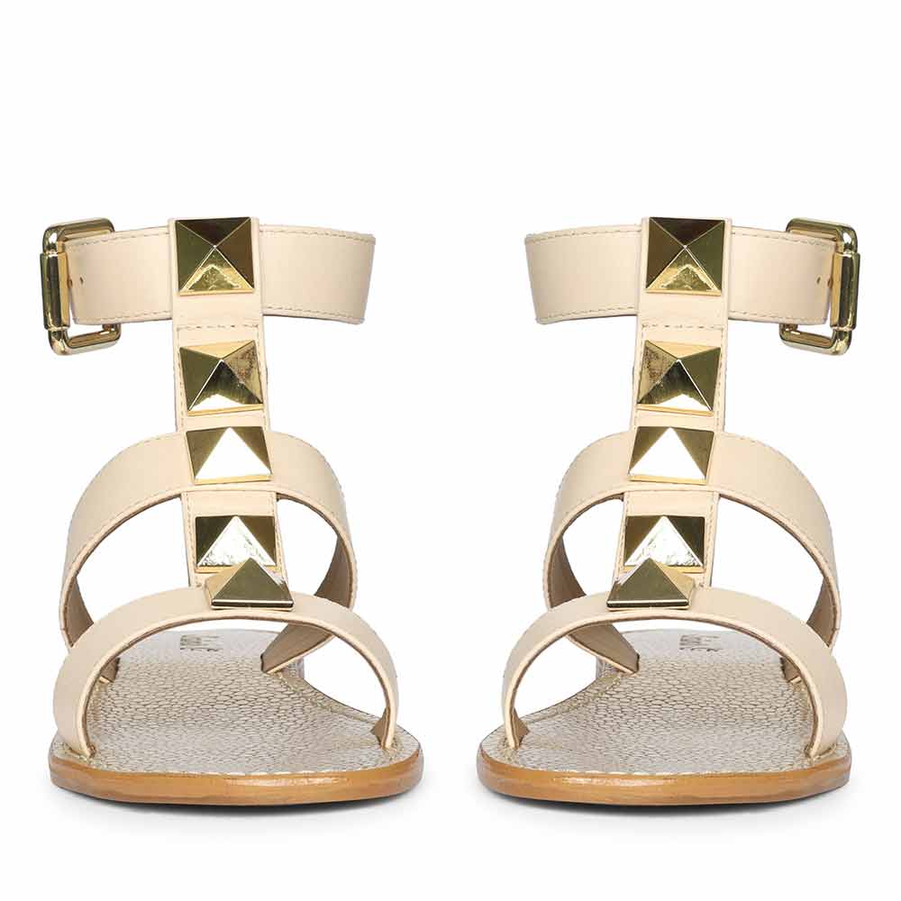 Saint Ida Metal Studded Ivory Leather Sandals