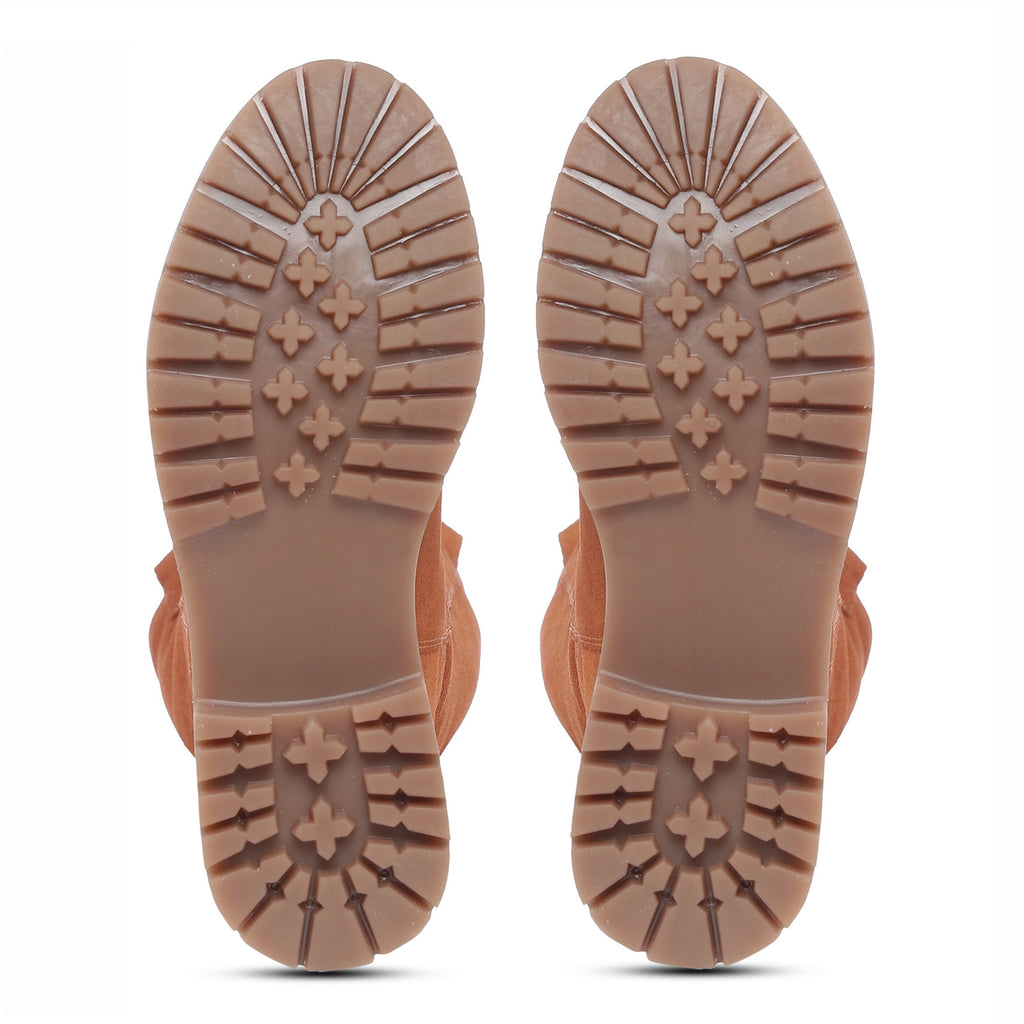 These Saint Janet top-notch suede leather knee high long boots by SaintG will keep you looking stylish, features stitching details with paneled finish, a rounded toe and leather loop both side on top. complete with fleece lining for a luxurious feel, padded leather footbed provides lasting comfort. The slip on closure boot sit on a slip-resistant brown TPR sole provides superior grip on various surfaces. A low heel makes this boot a stylish choice for any occasion.
