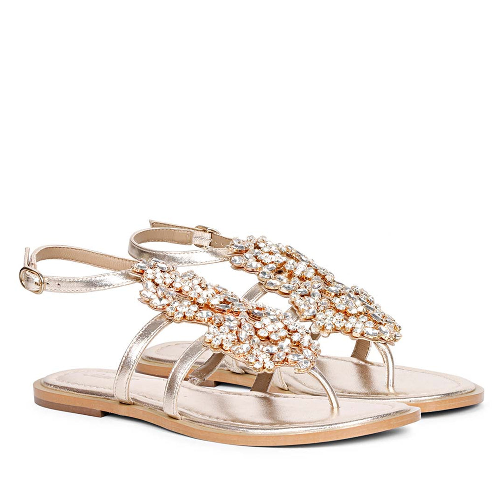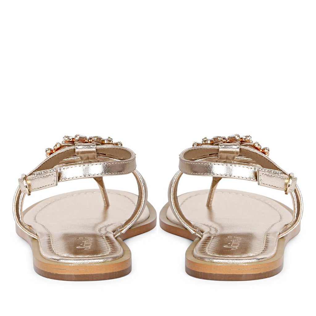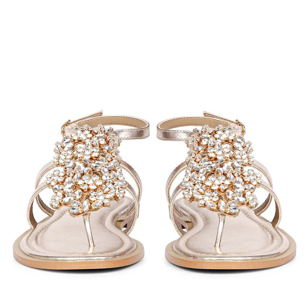 Saint Jenna Silver Stone Adorned Gold Leather Flat Sandals