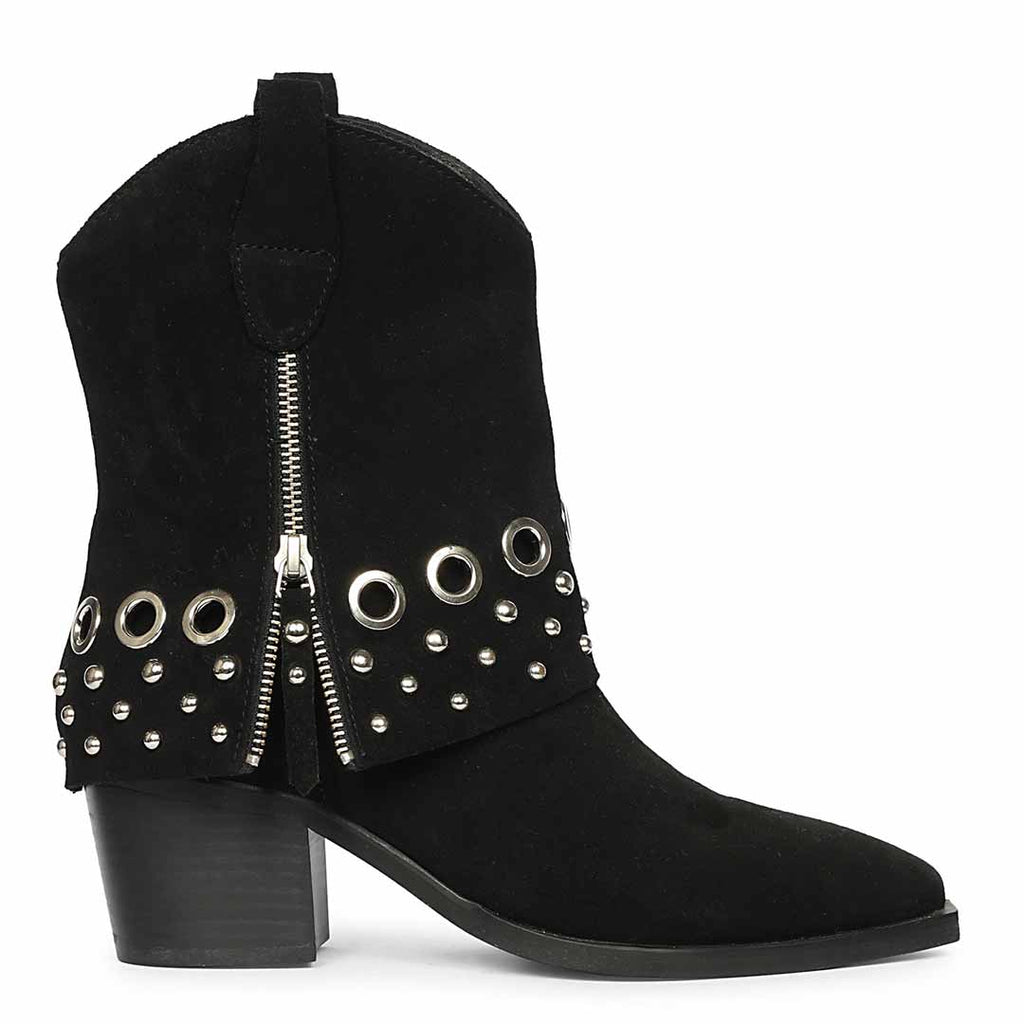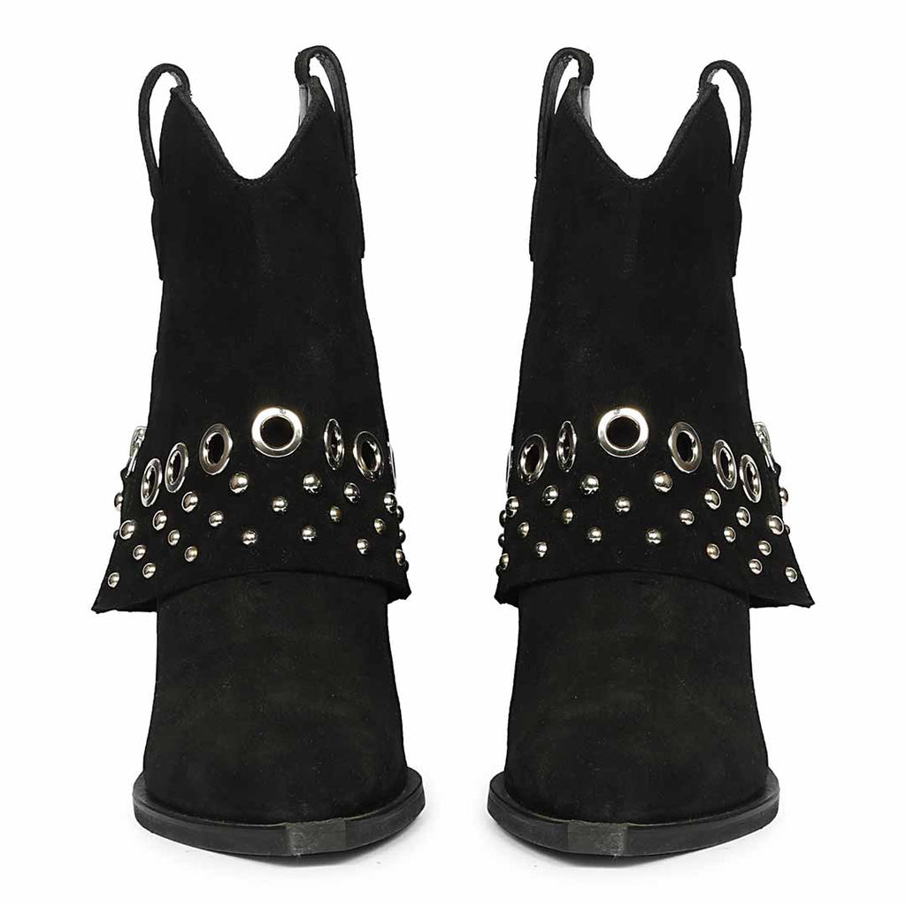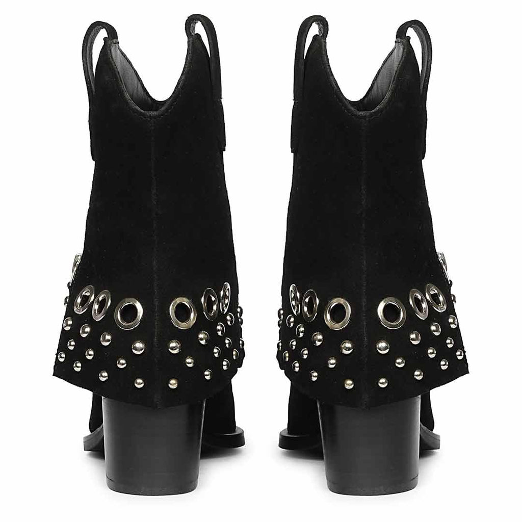 Saint Jordis Studded Fold Over Black Leather Ankle Boots