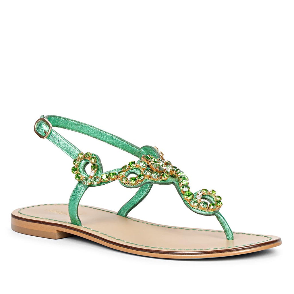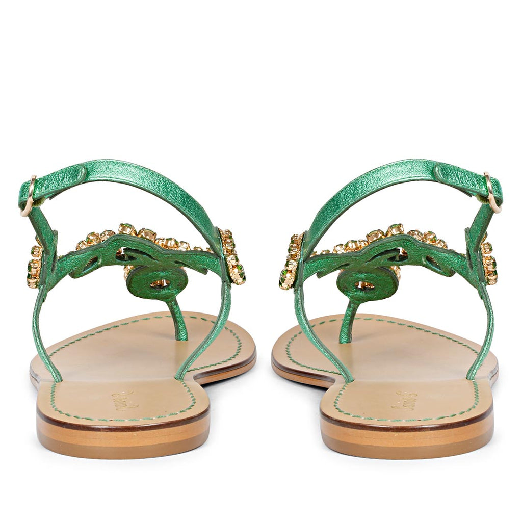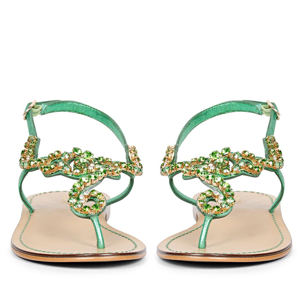 Saint Kaia Gold Stone Metallic Green Leather Sandals