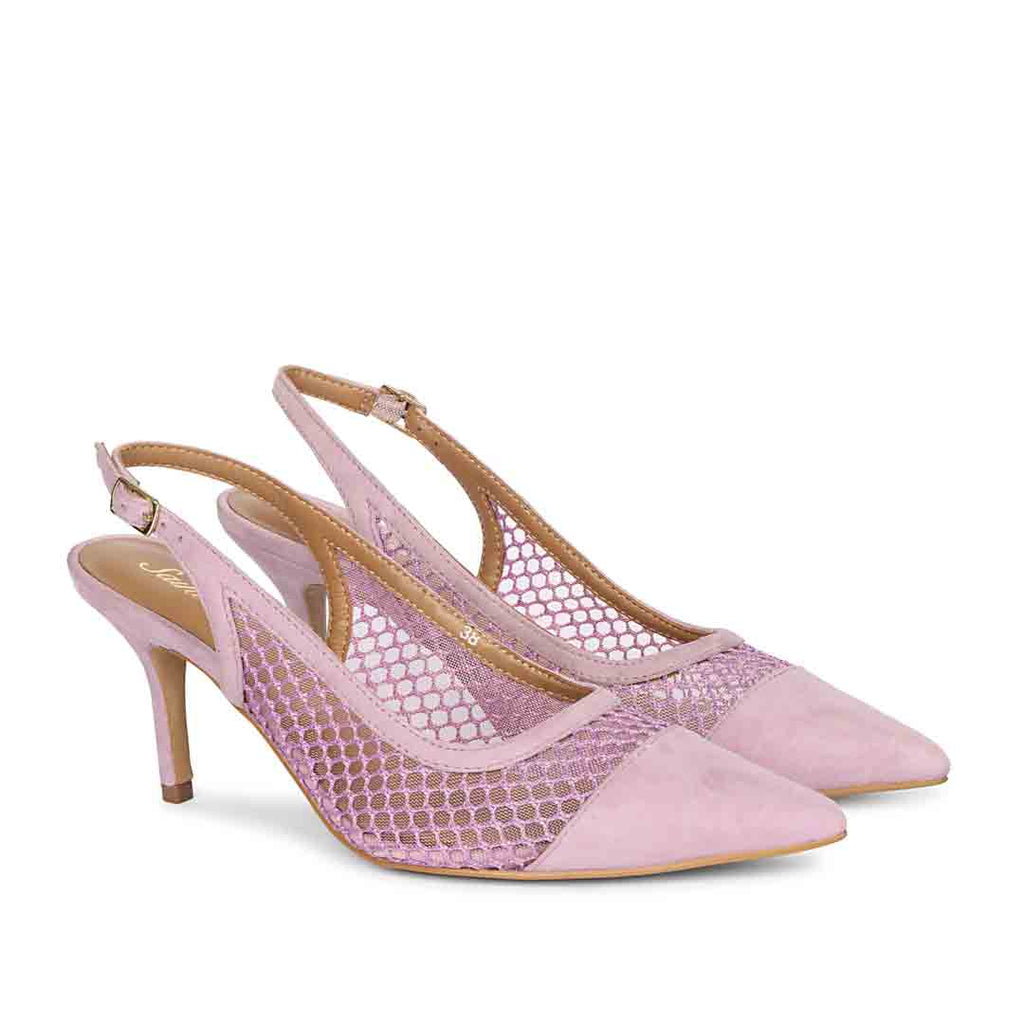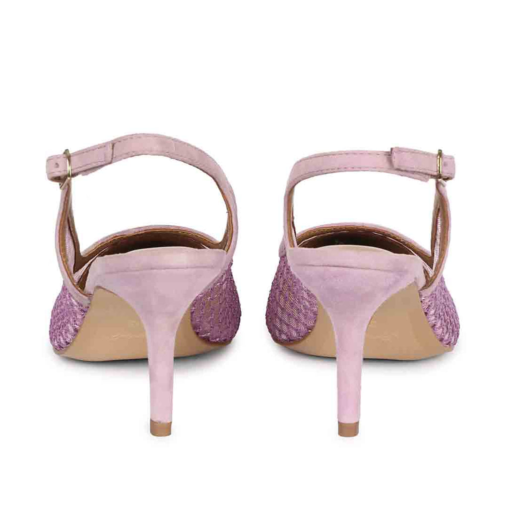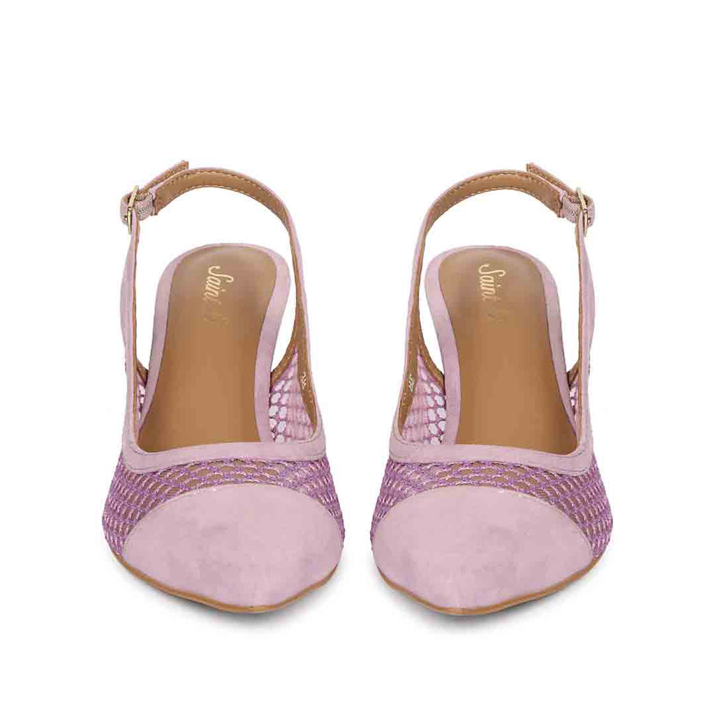 Saint Katy Lilac Leather & Premium Net Slingback Pumps