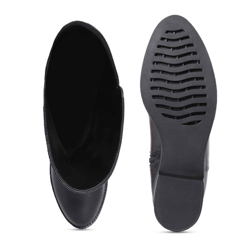 The Saint Kayleigh black leather boot is a luxe boot that cleverly combines a stylish youthful outlook. Made from the finest materials and finished with trending design details. These premium quality leather boots are constructed using an anti skid handmade tunit sole which ensures that you do not accidentally fall on any surface. Fitted on a low heel. The Height of the Boot is-62.23 cm (24.5 Inches) approx.