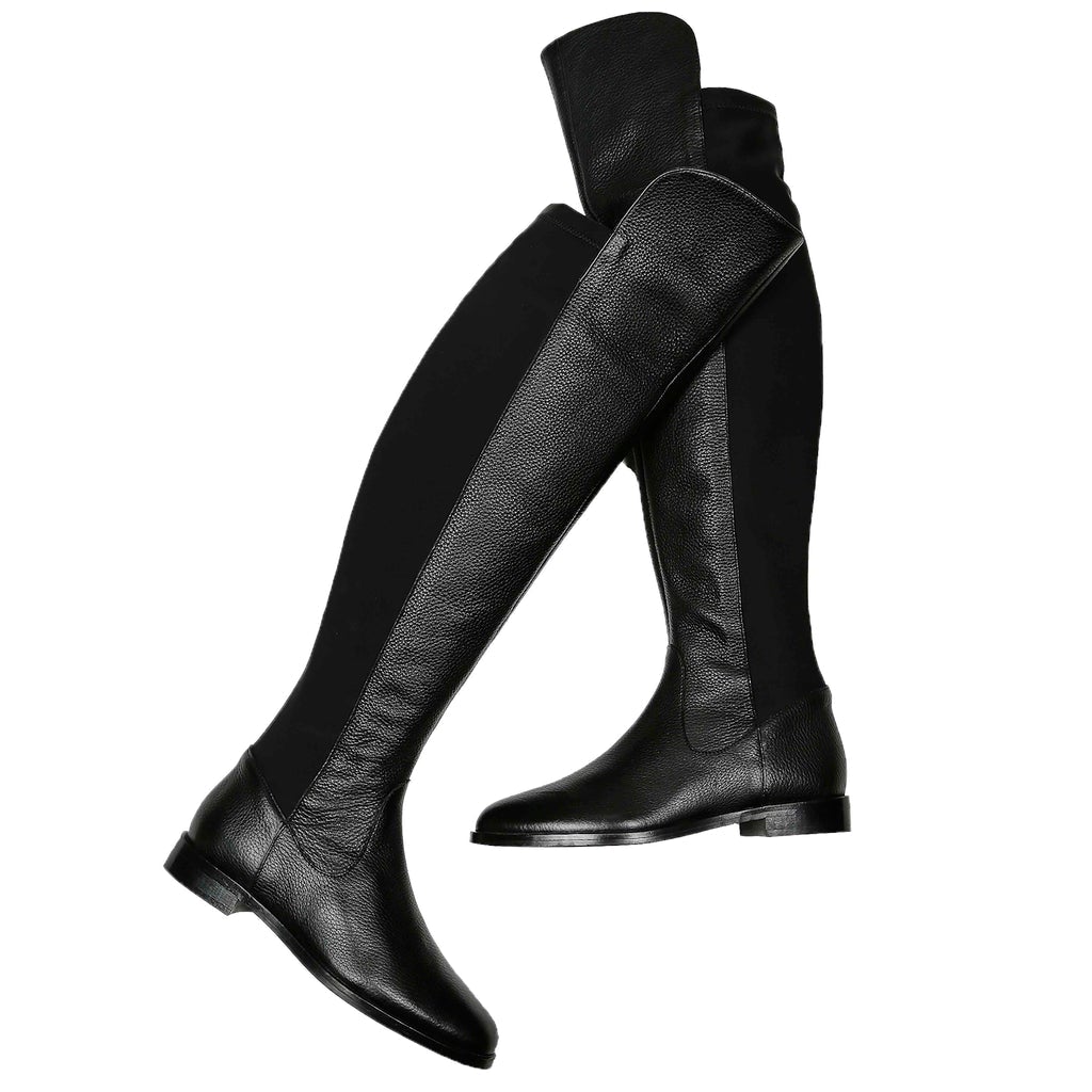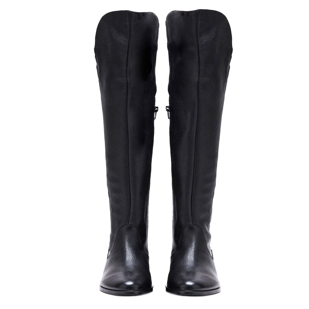 Crafted From Black Napa Milled Leather With Back Side Stretchable Fabric, Round Toe Instep Zip Closure With 1.5 Inches Heeled Boots, The Length of the Boot is measured around-20.5 Inches, and The Width of the Calf is measured around-15.5 Inches.