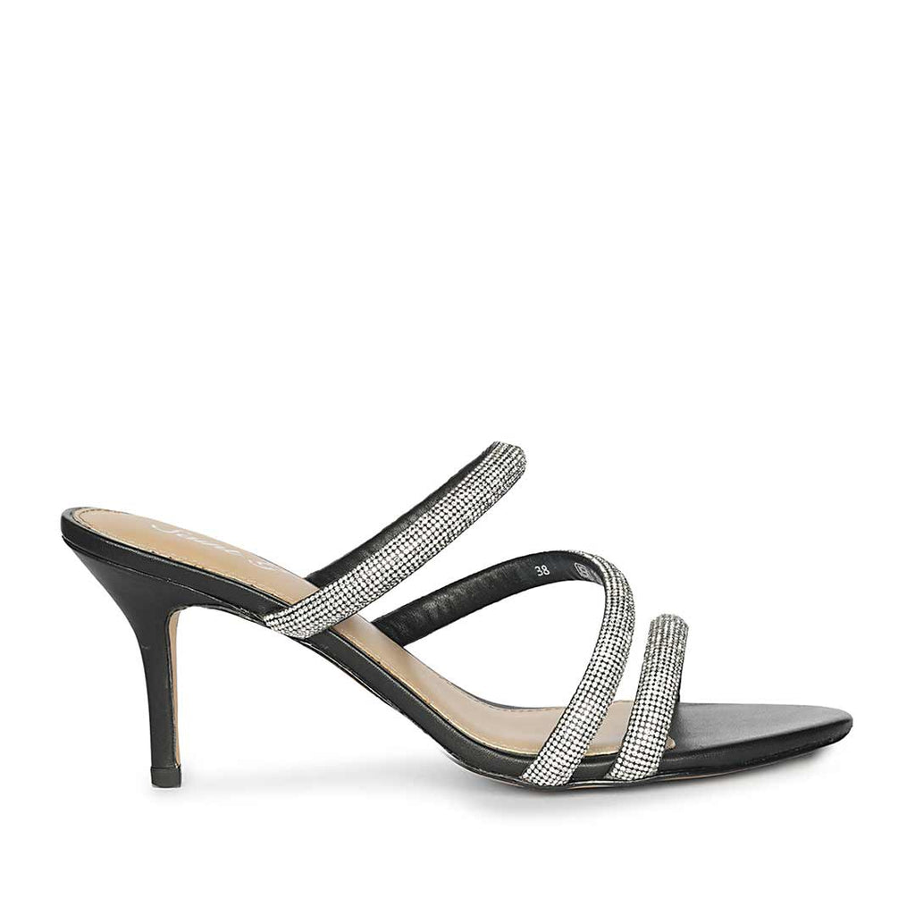 Saint Layla Silver Crystal Cord Black Leather Stilettos