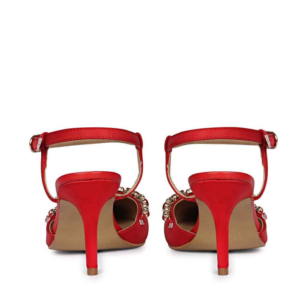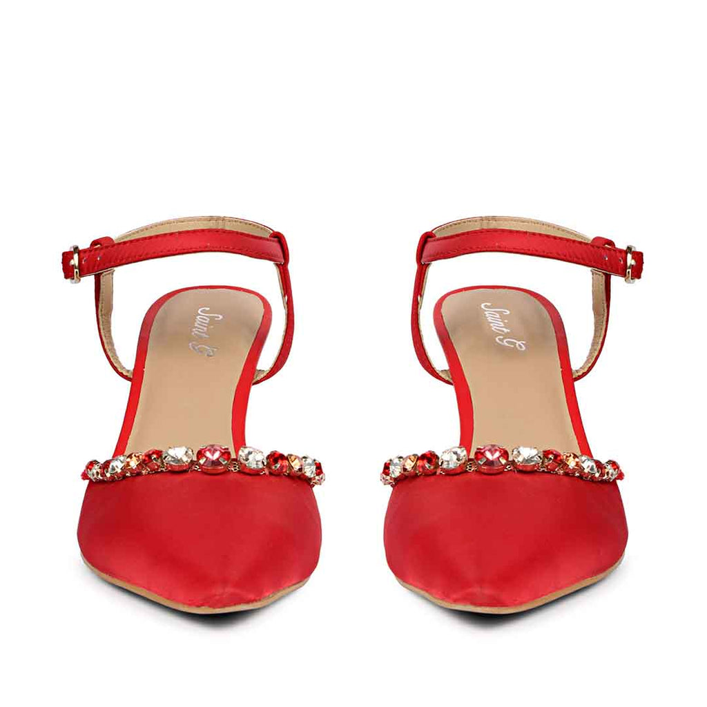 Leila Multi Stone Embellished Red Nylon Fabric Pumps
