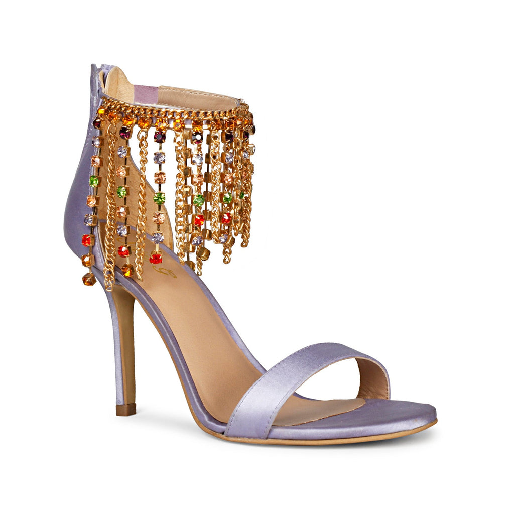 Luana Multi Stone Studded Chain Lilac Satin Stilettos