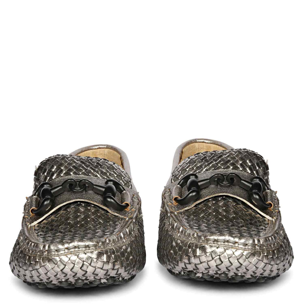 Saint Lucy Gun Metal Woven Leather Loafers
