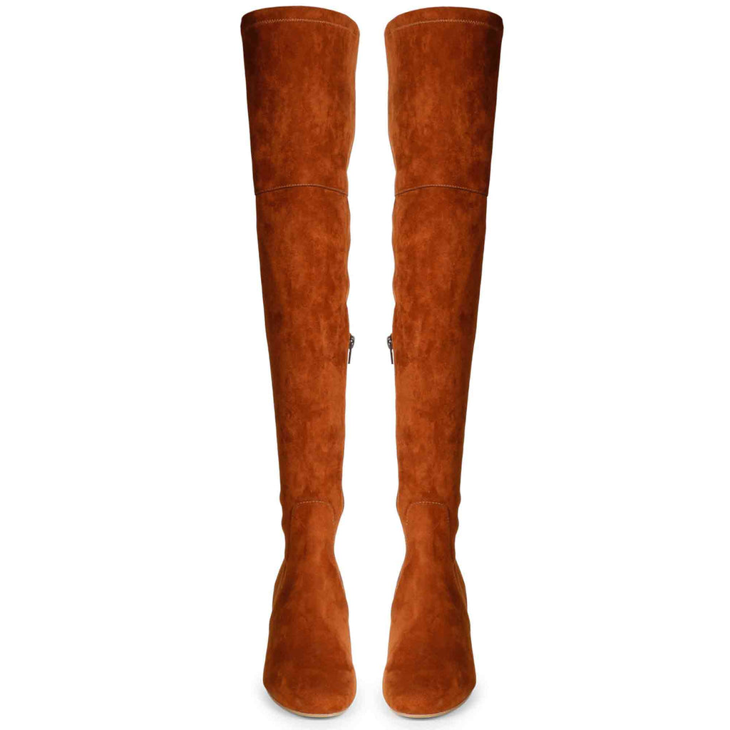 Saint Luisa Tan Stretch Suede Above The Knee Boots