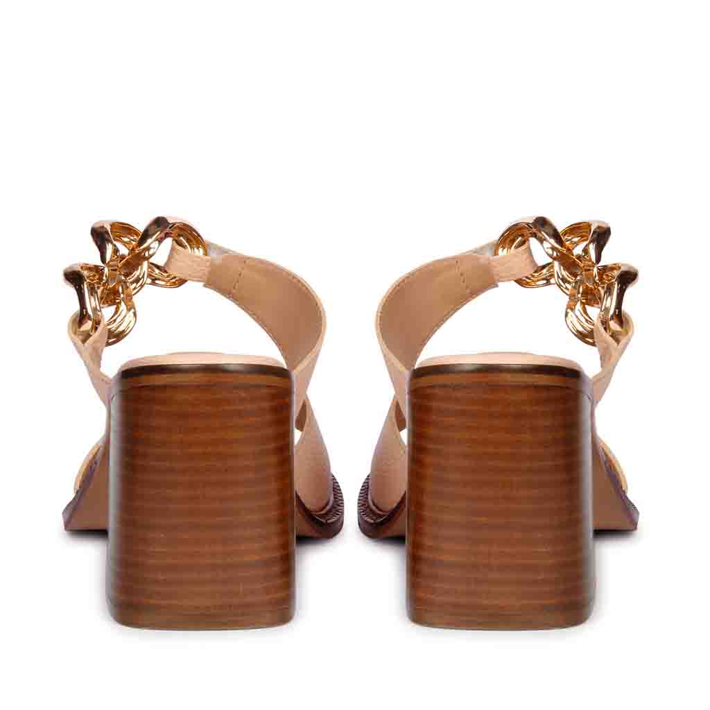 Saint Madrid Gold Chain Embellished Cipra Leather Block Heels