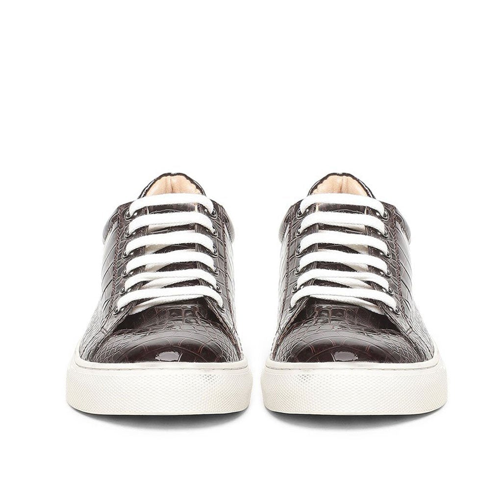 Saint Maeve Dark Brown Croco Print Leather Sneakers