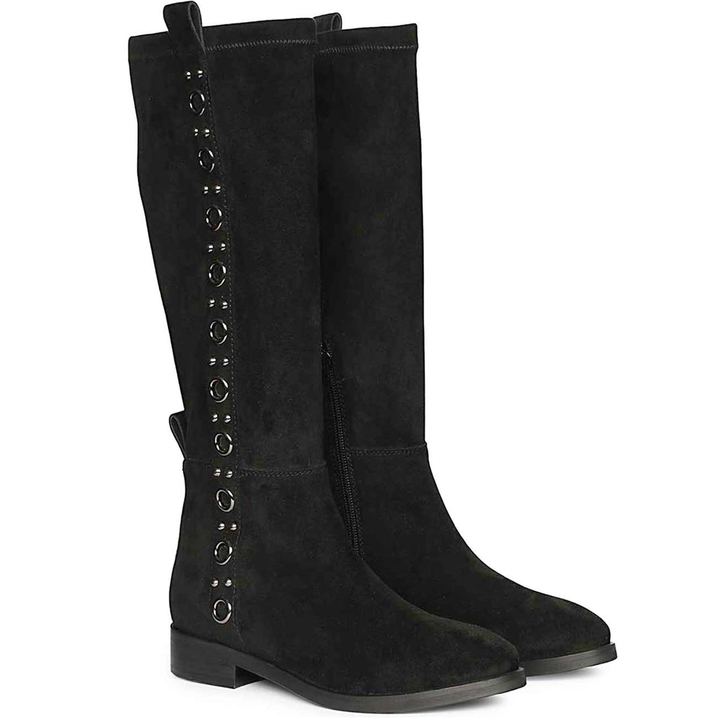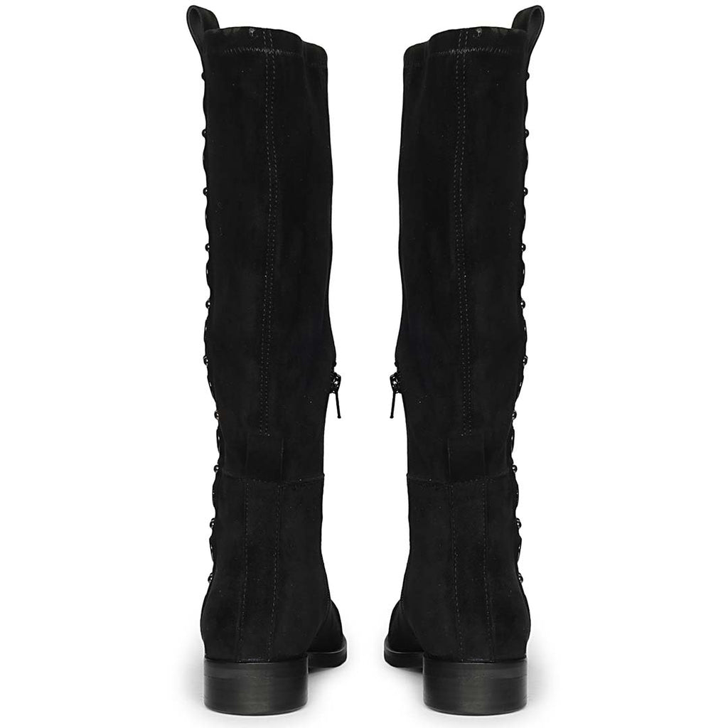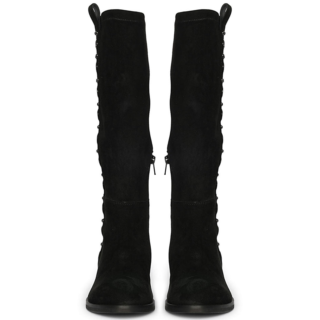 Saint Marlowe Eyelets Black Stretch Suede Long Boots