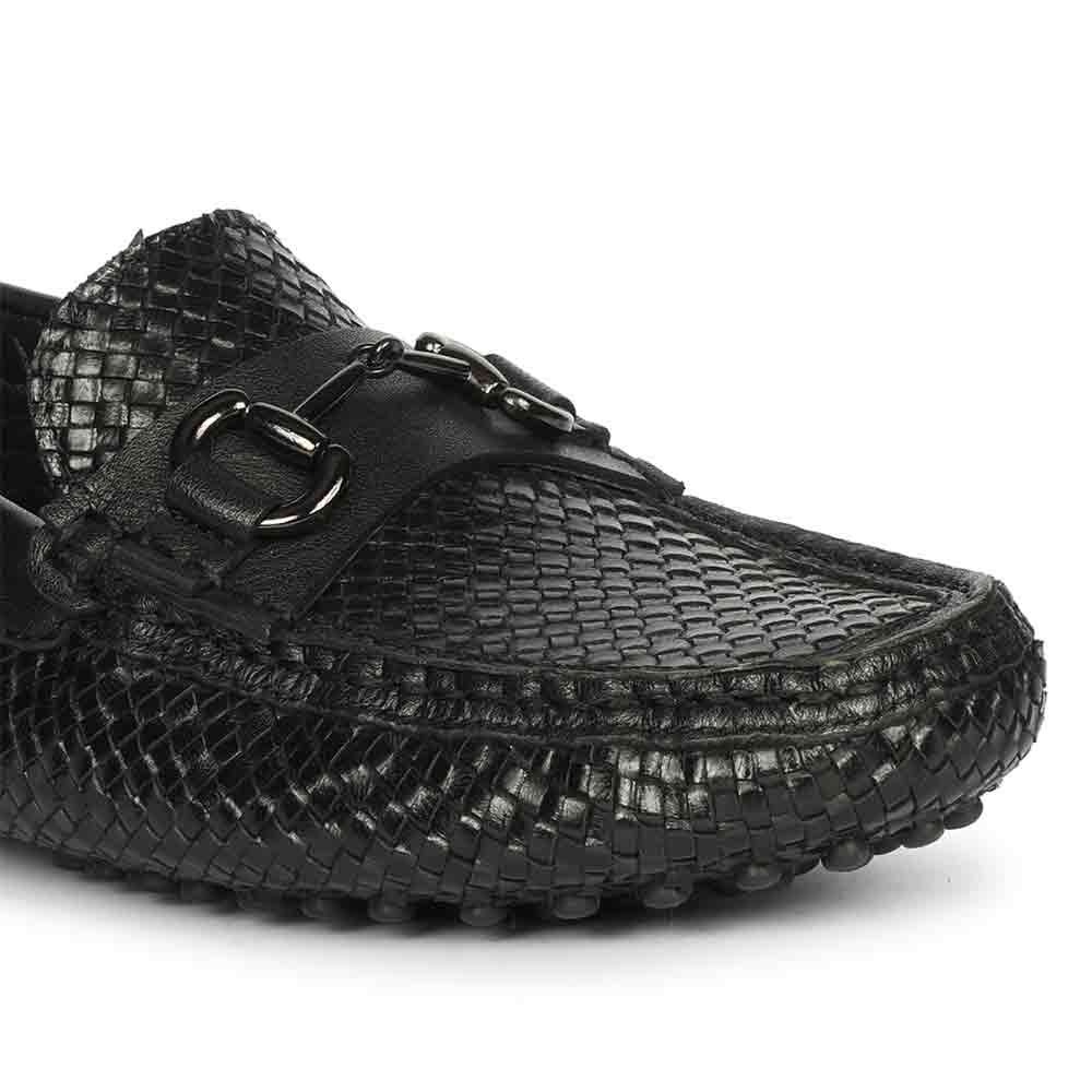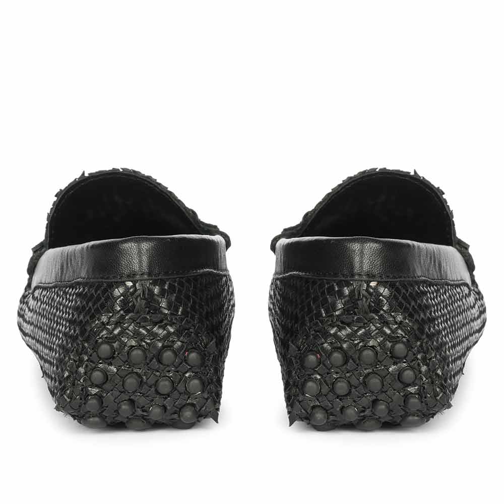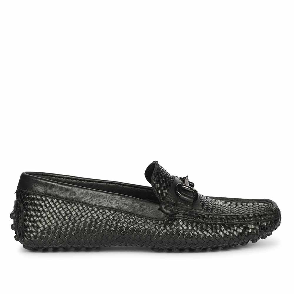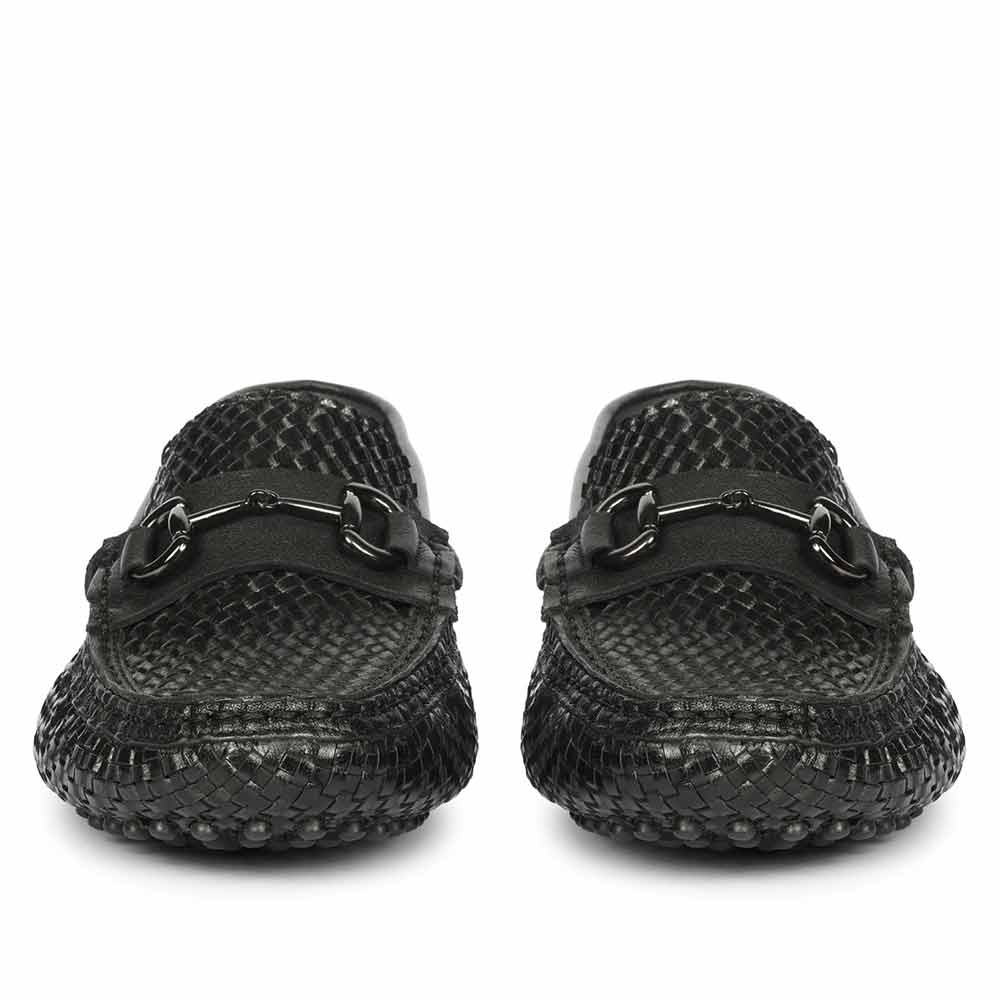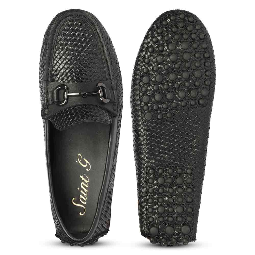 Saint Aurora Black Handwoven Leather Horsebit Loafers