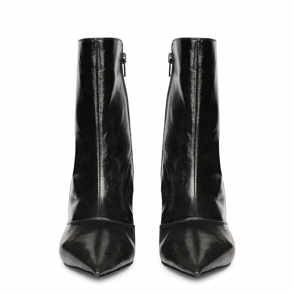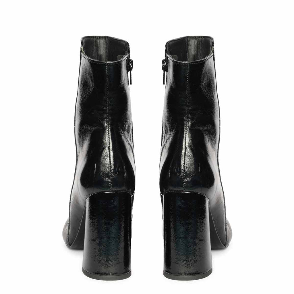 Saint Maura Black Crinkle Patent Leather High Ankle Boots