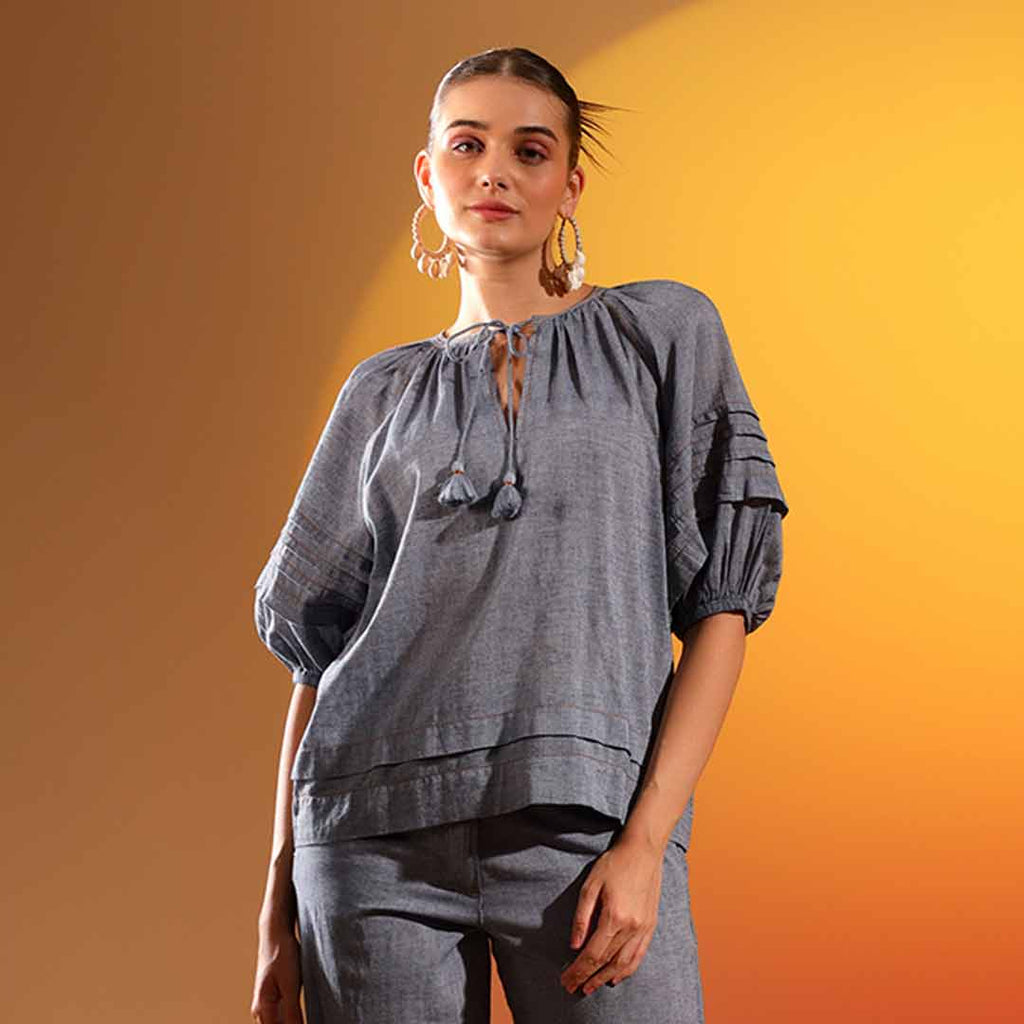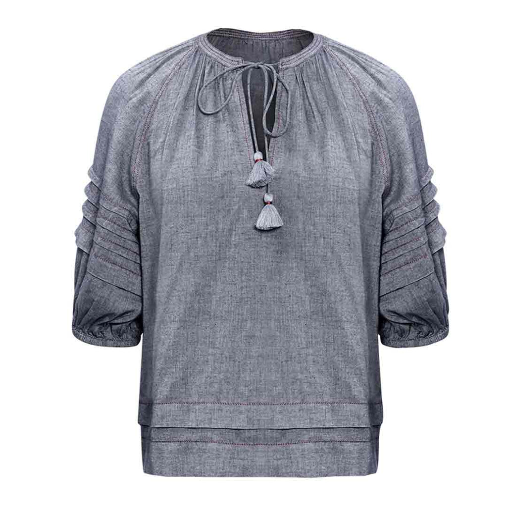 Saint Womens Grey Solid Chambray Top