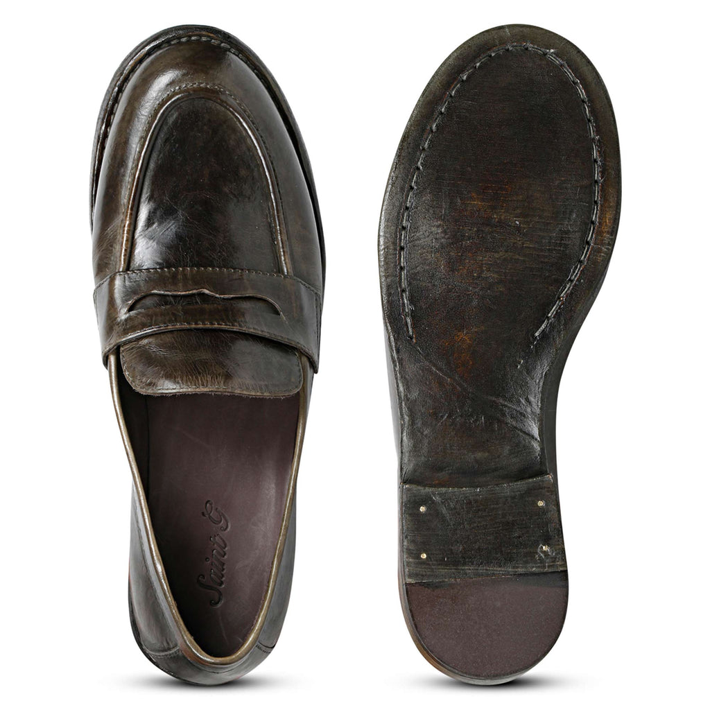 Comfy and trendy, this casual moccasin from SaintG will quickly become your favorite kicks, features a Khaki leather upper, veneer leather covered low heel, a saddle strap embellishment across the vamp and a slip-on design. Complete with breathable leather lining, padded leather insole and leather sole. These can be stylishly worn outdoors and indoors. Finished with stitching accents, has a slip on closure.