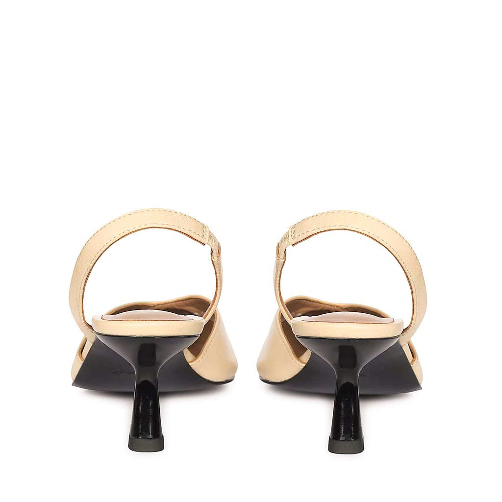 Add some beige pizzazz to your wardrobe with Saint Nanette's Beige Leather Pumps! These cheeky pumps have a pointed toe that will definitely turn heads. Elevate your look with these whimsical and playful pumps.