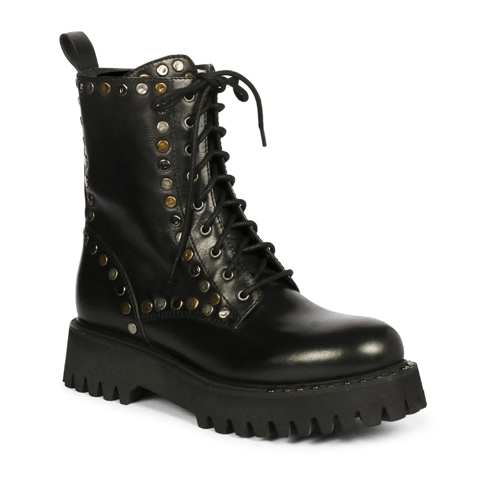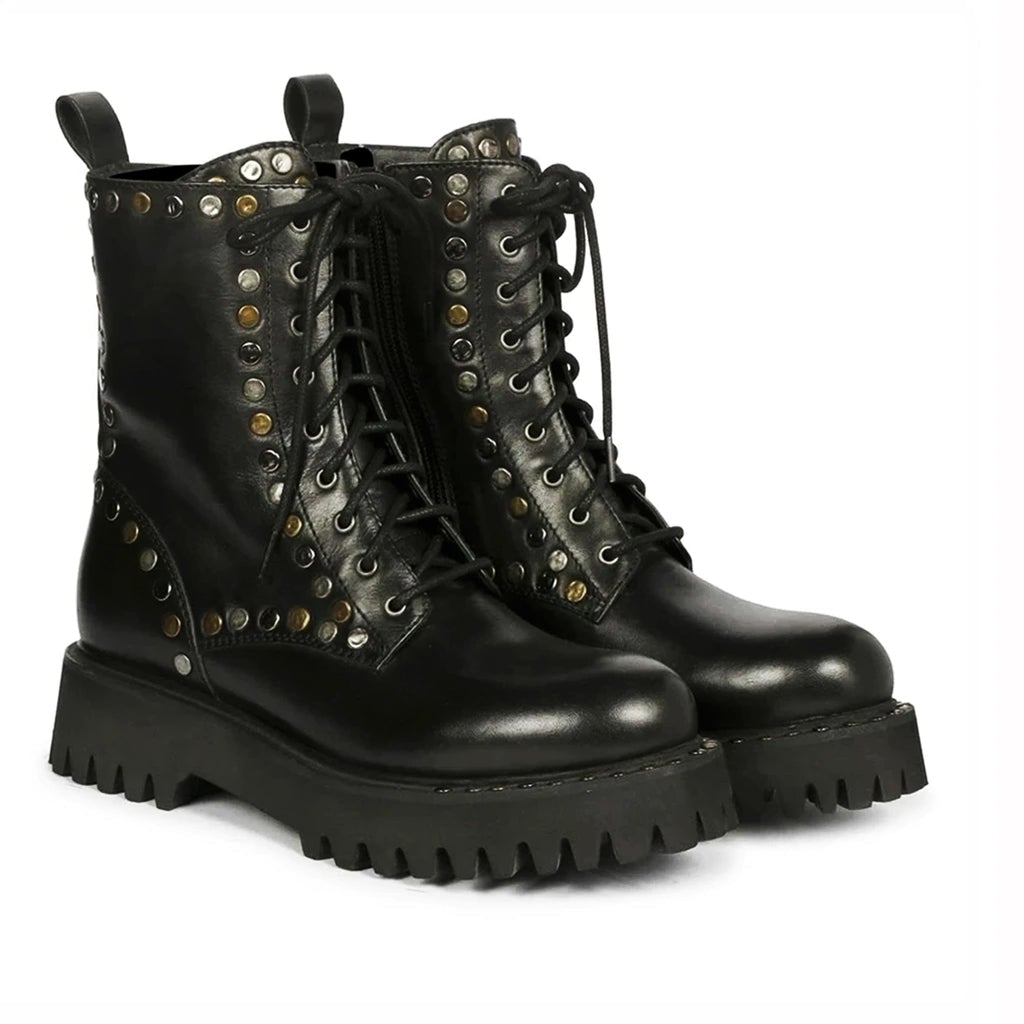 Saint Natalie Metal Studs Lace Up High Ankle Leather Boots