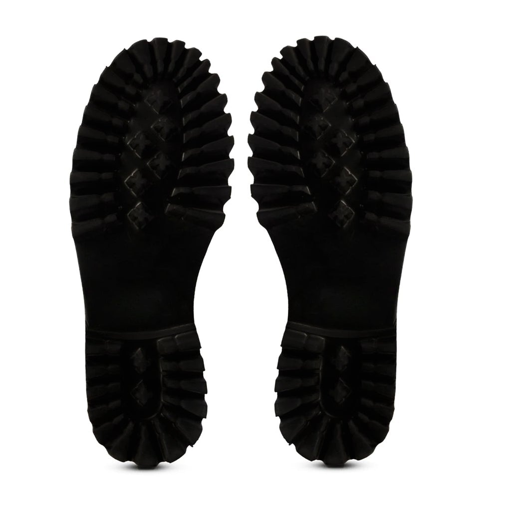 Make a head-turning statement as you wear this pair of leather handcrafted laceup biker boots from SaintG. Embellished with muticolor metal studs for a stylish finish. Featuring lace-up front with metal eyelets, comes with a slip-resistant eva biker sole which ensures that you do not slip or fall on any surface. These boots consist of a round toe design, stitched welt, breathable leather lining and padded leather insole. The laceup closure and leather pull up tab completes the design.