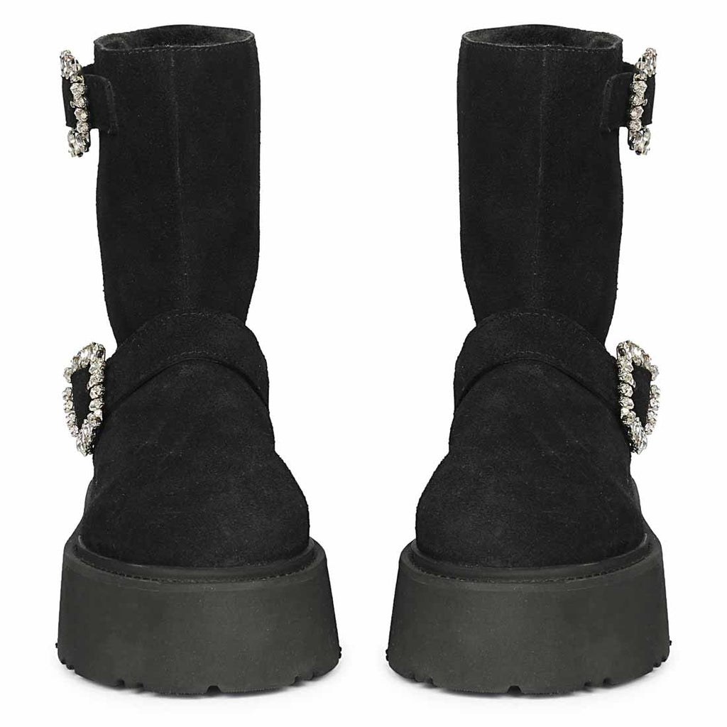 Saint Nordova Crystal Buckle Black Suede Leather Snug Boots