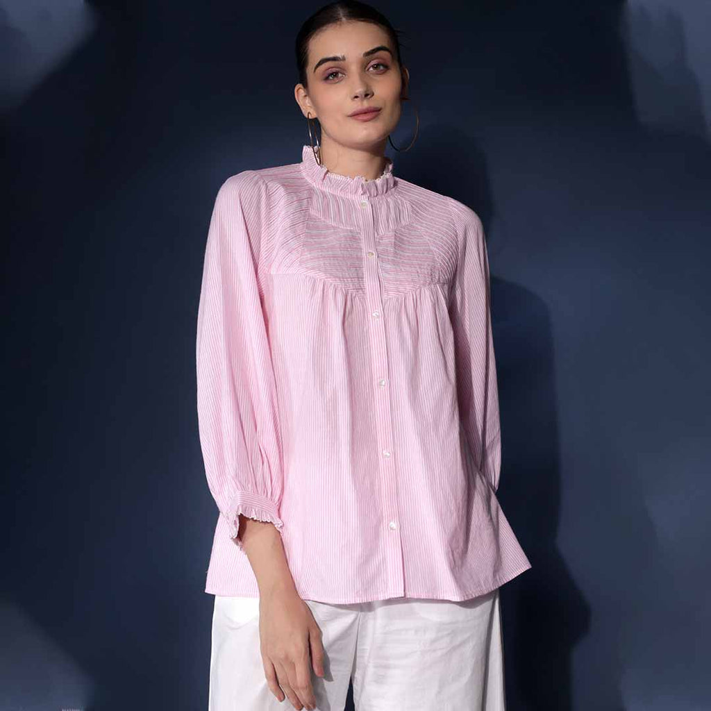 Saint Womens Blush Cotton Yarndyed Stripe Top