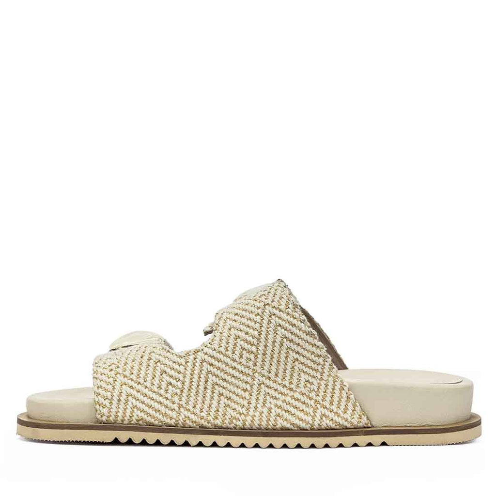 Saint Oren Off White Stone Jeweled Raffia Leather Sandals