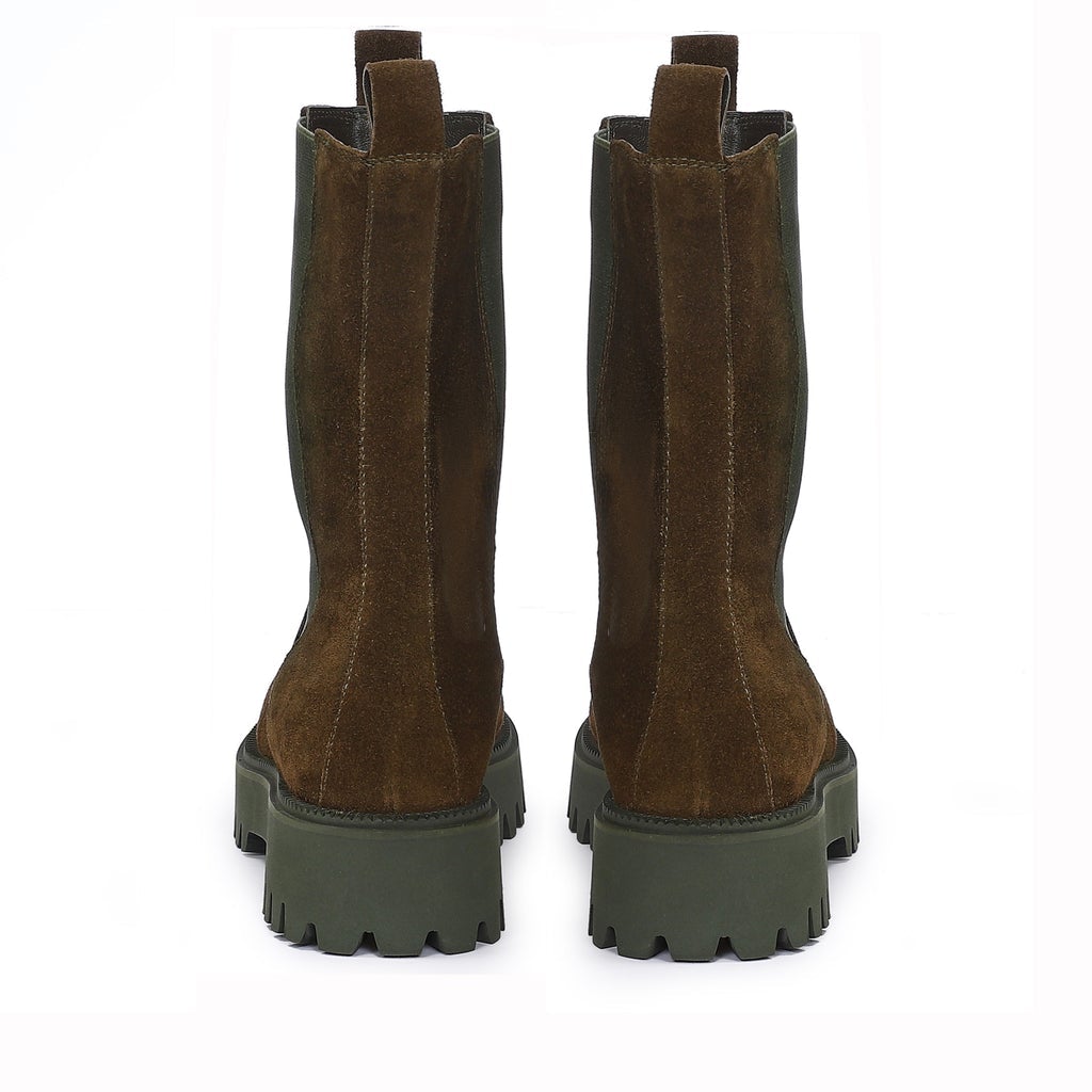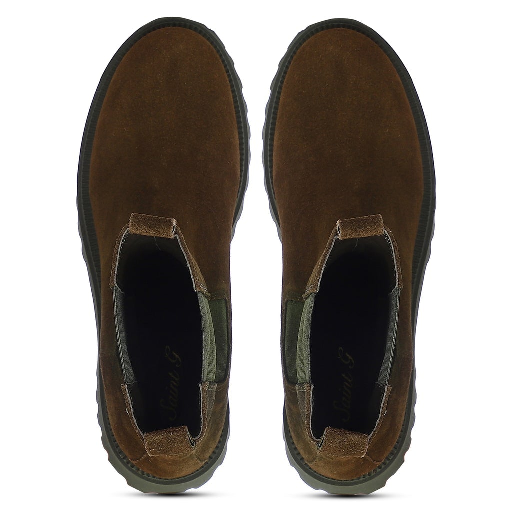 Set the trend this season in these Paolina bosco green calf boots crafted from genuine leather by SaintG, Fitted with elasticated side gores to easily slip on and off. The premium leather upper assures comfort, while the handmade eva sole guarantees traction irrespective of the surface. The pull up tabs completes the design.