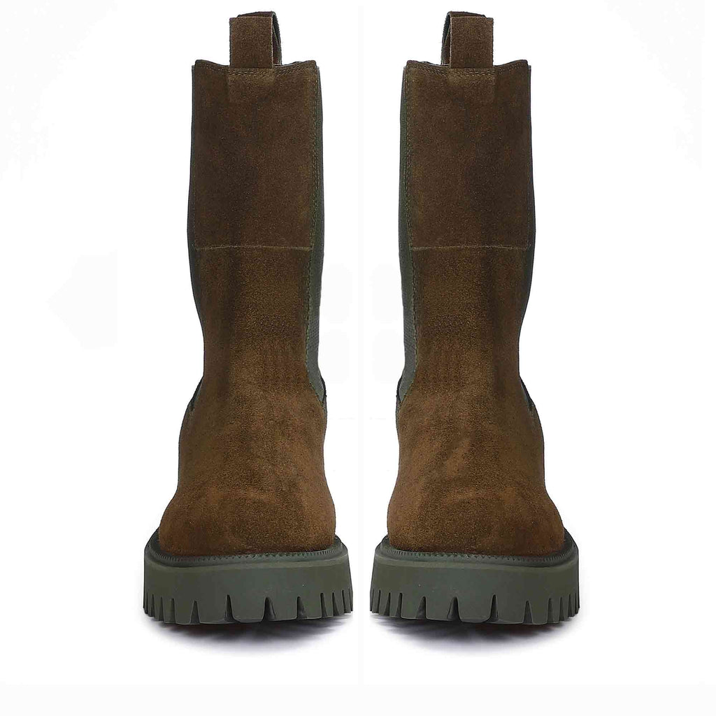 Set the trend this season in these Paolina bosco green calf boots crafted from genuine leather by SaintG, Fitted with elasticated side gores to easily slip on and off. The premium leather upper assures comfort, while the handmade eva sole guarantees traction irrespective of the surface. The pull up tabs completes the design.