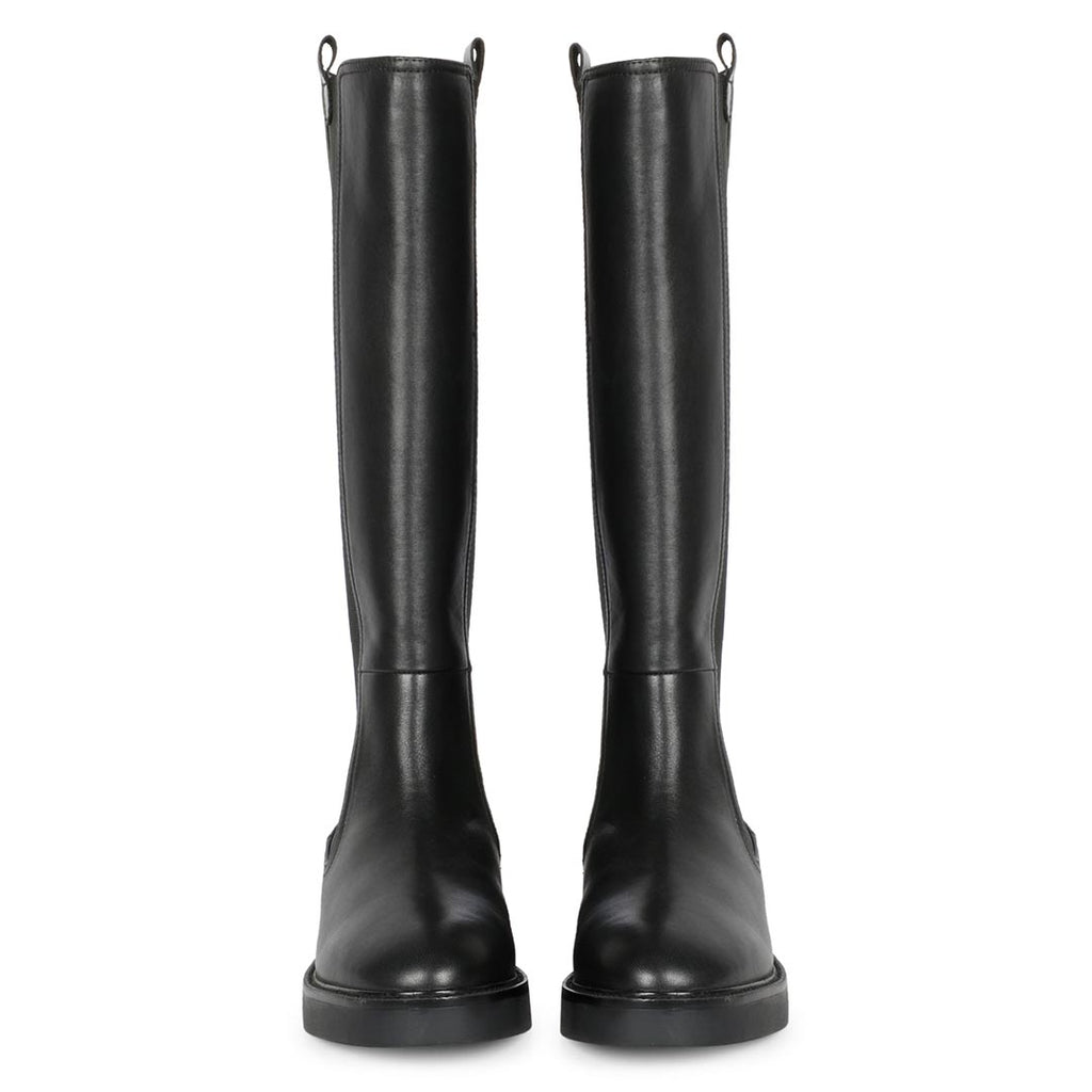 Saint Pietro Black Leather Elasticated Back Zipper Long Boots