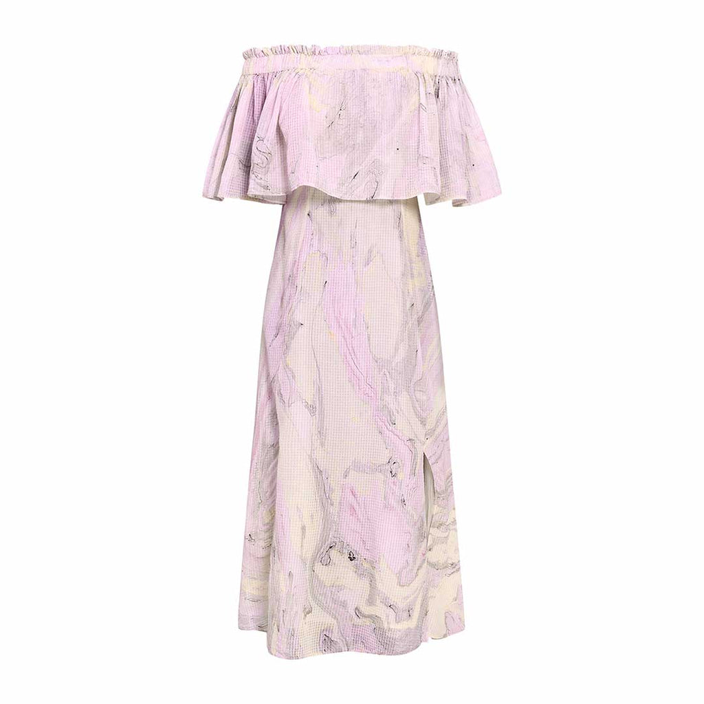 Saint Womens Lilac Marbel Dobby Off-Shoulder Midi Dress
