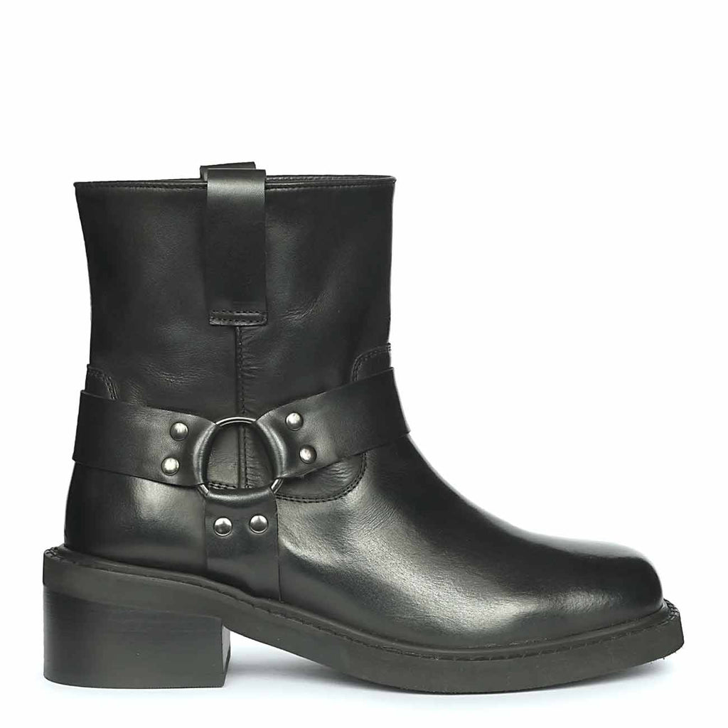 Saint Sally Saint Black Leather O-Ring High Ankle Boots