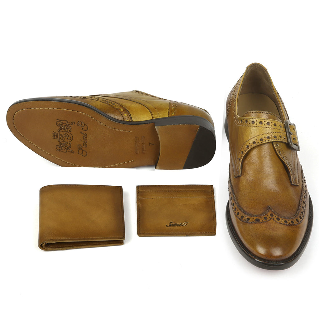 This SaintG Bespoke Mens set comes with handcrafted leather shoes, leather wallet and leather card holder.