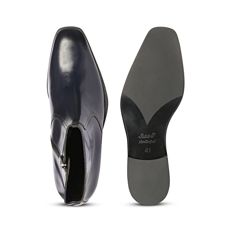 A pair of handcrafted blue two color toned leather high ankle boot from Saint G. It comes with inside zip with leather pull tab, leather lining, leather insole and hand finished leather sole, nailing on heel and with welt.