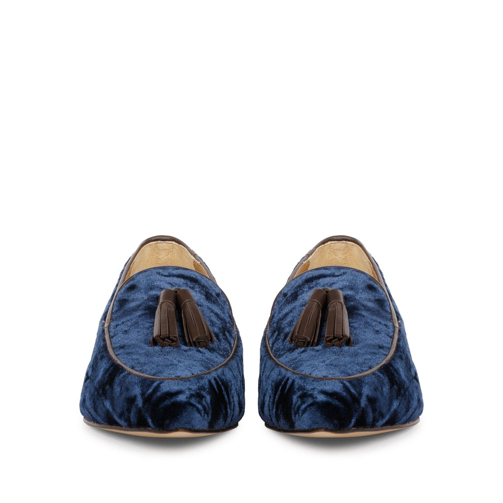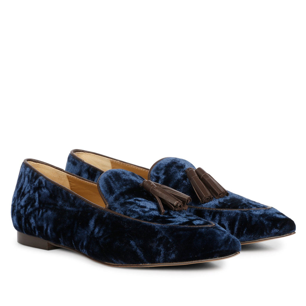 Saint Simona Blue Velvet Tassel Moccasins