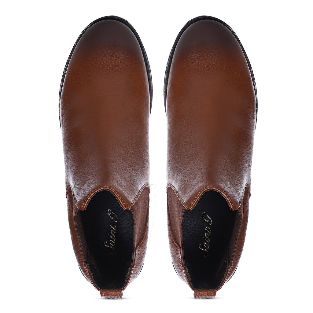 Set the trend this season in these Saint Sophia brown ankle boots crafted from genuine leather, Featuring burnished toe and back, leather pull tab with elasticated side gores to easily slip on and off. The premium leather upper assures comfort, while the handmade TPR sole guarantees traction irrespective of the surface, fitted with a rounded toe and set on a slightly raised heel. The Elasticated side panel and pull up tab on the back completes the design. It's a versatile investment for special need.