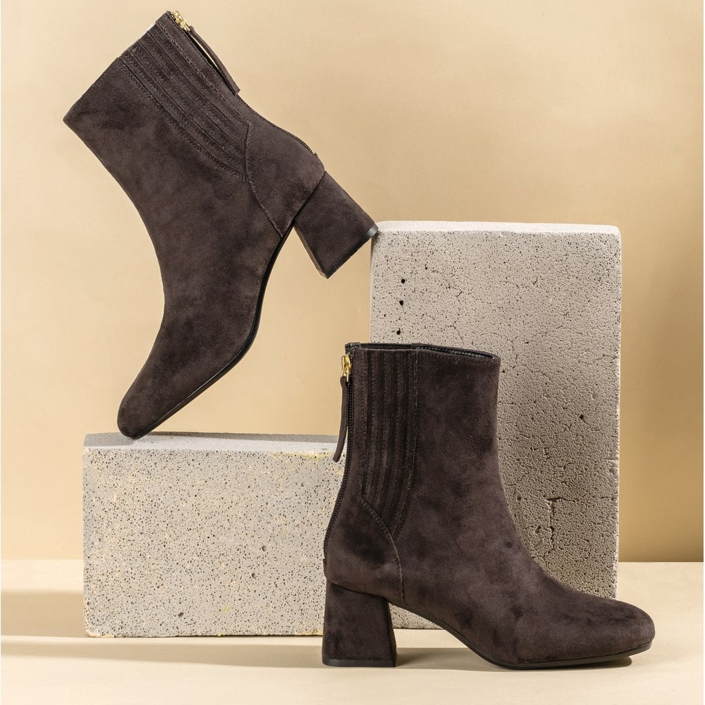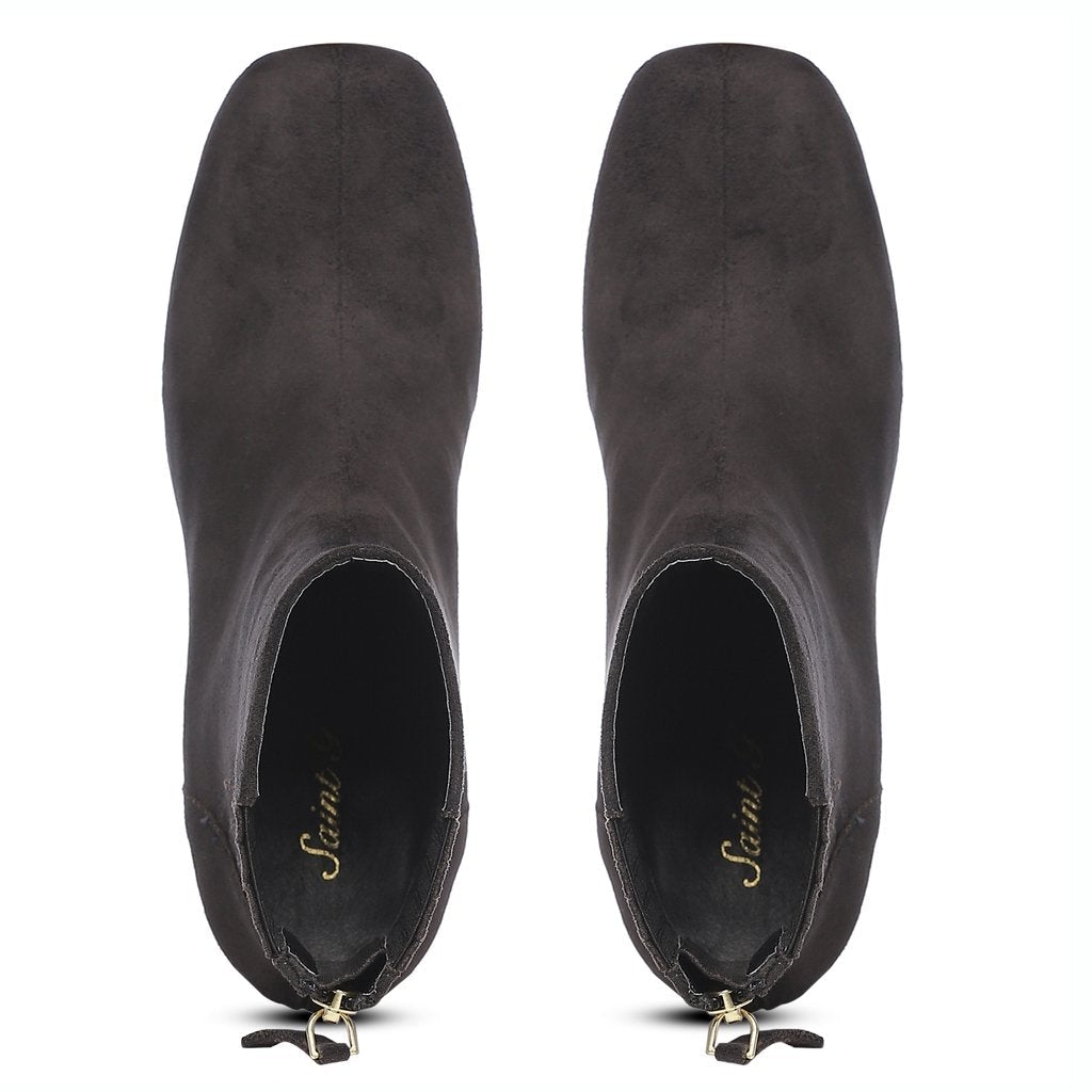 Saint Stellina Grey Suede Leather Back Zipper Ankle Boots