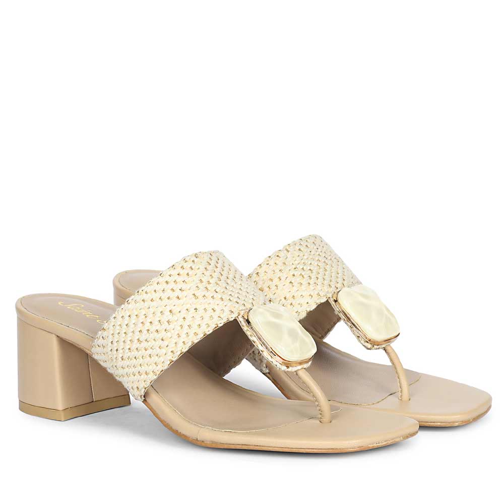 Saint Stevie Stone Jeweled Beige Raffia Block Heels
