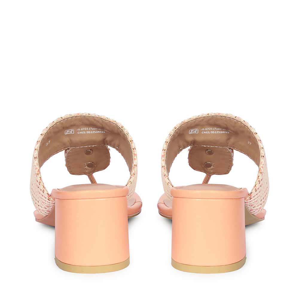 Saint Stevie Stone Jeweled Pink Raffia Block Heels