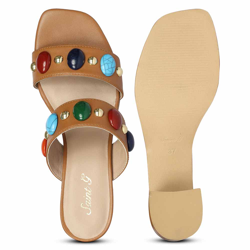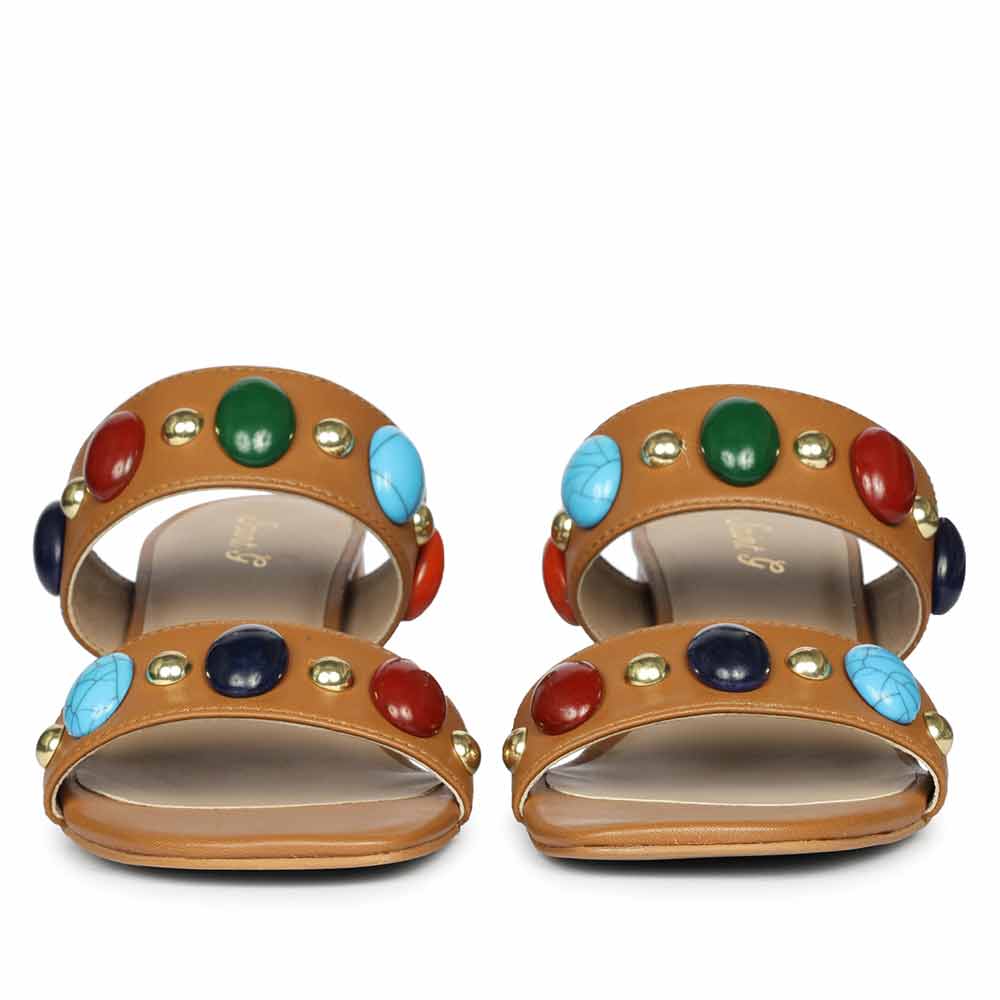 Saint Tahni Multi Stone Cuoio Leather Block Heels