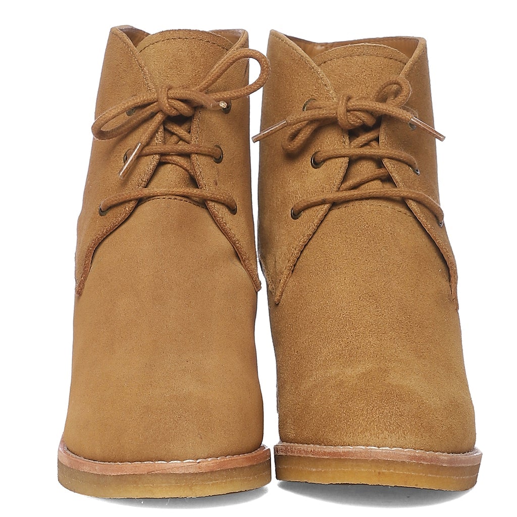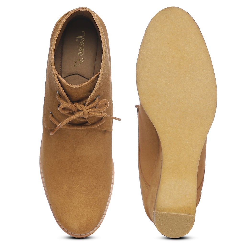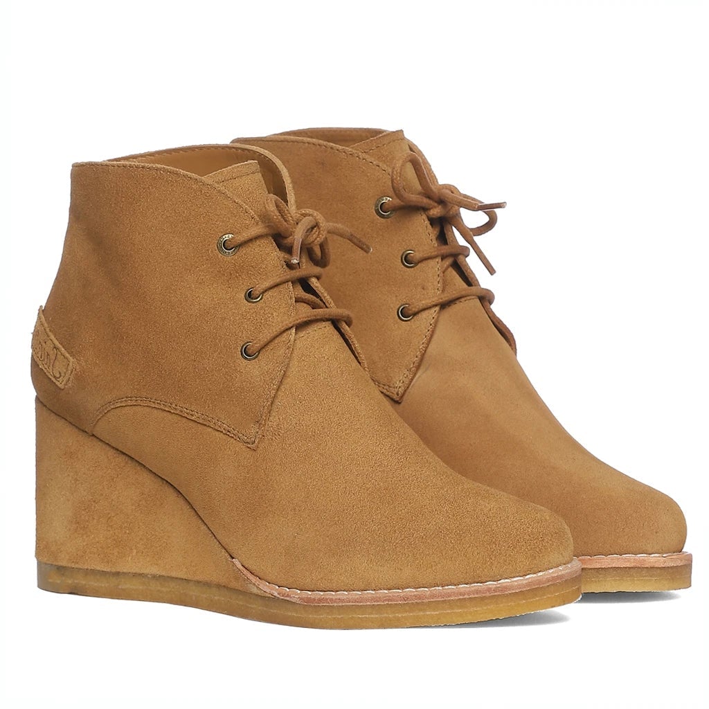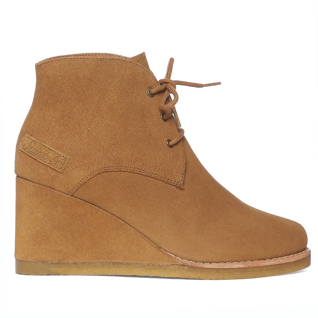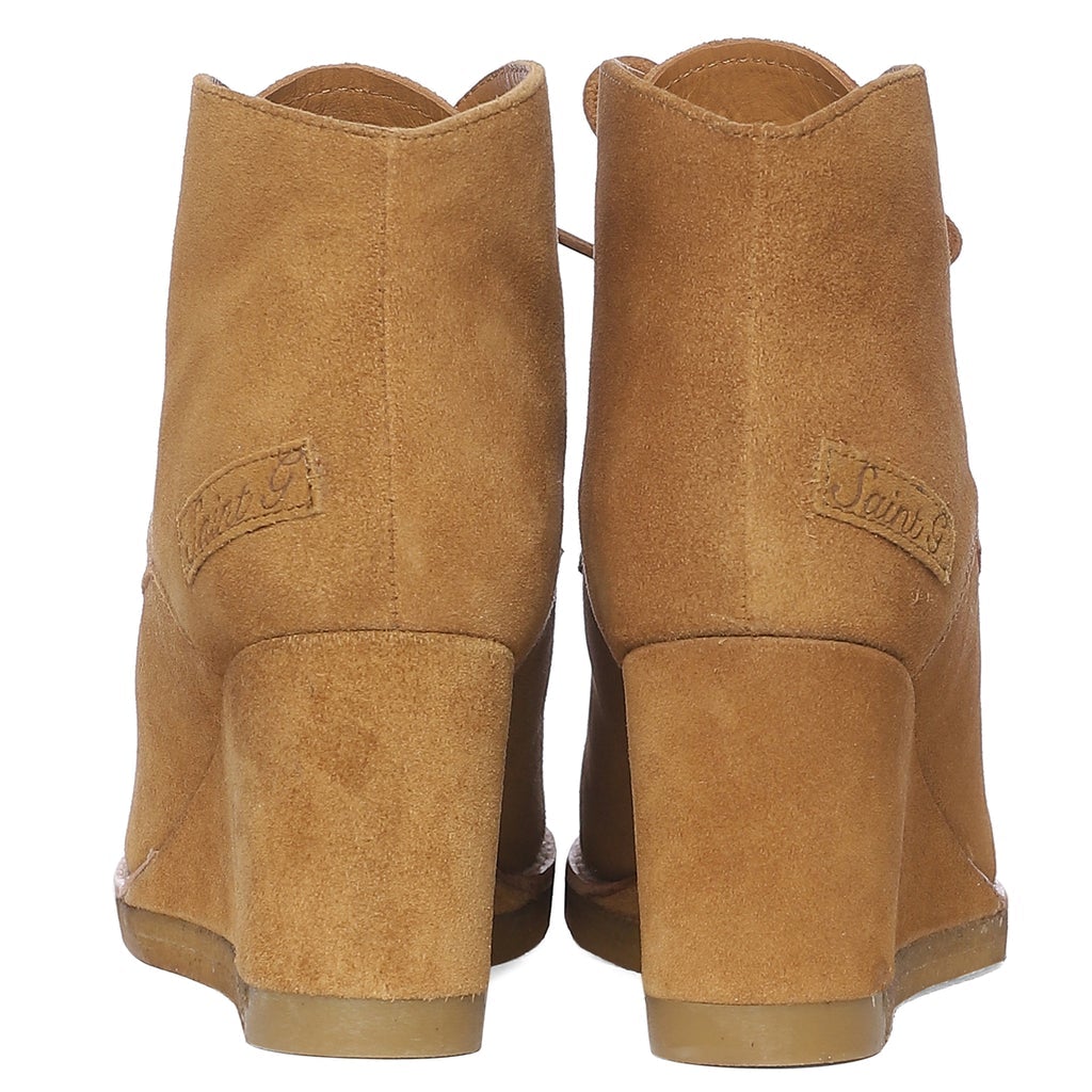 Saint Tesorina Tan Suede Leather Lace-Up Wedge Boots