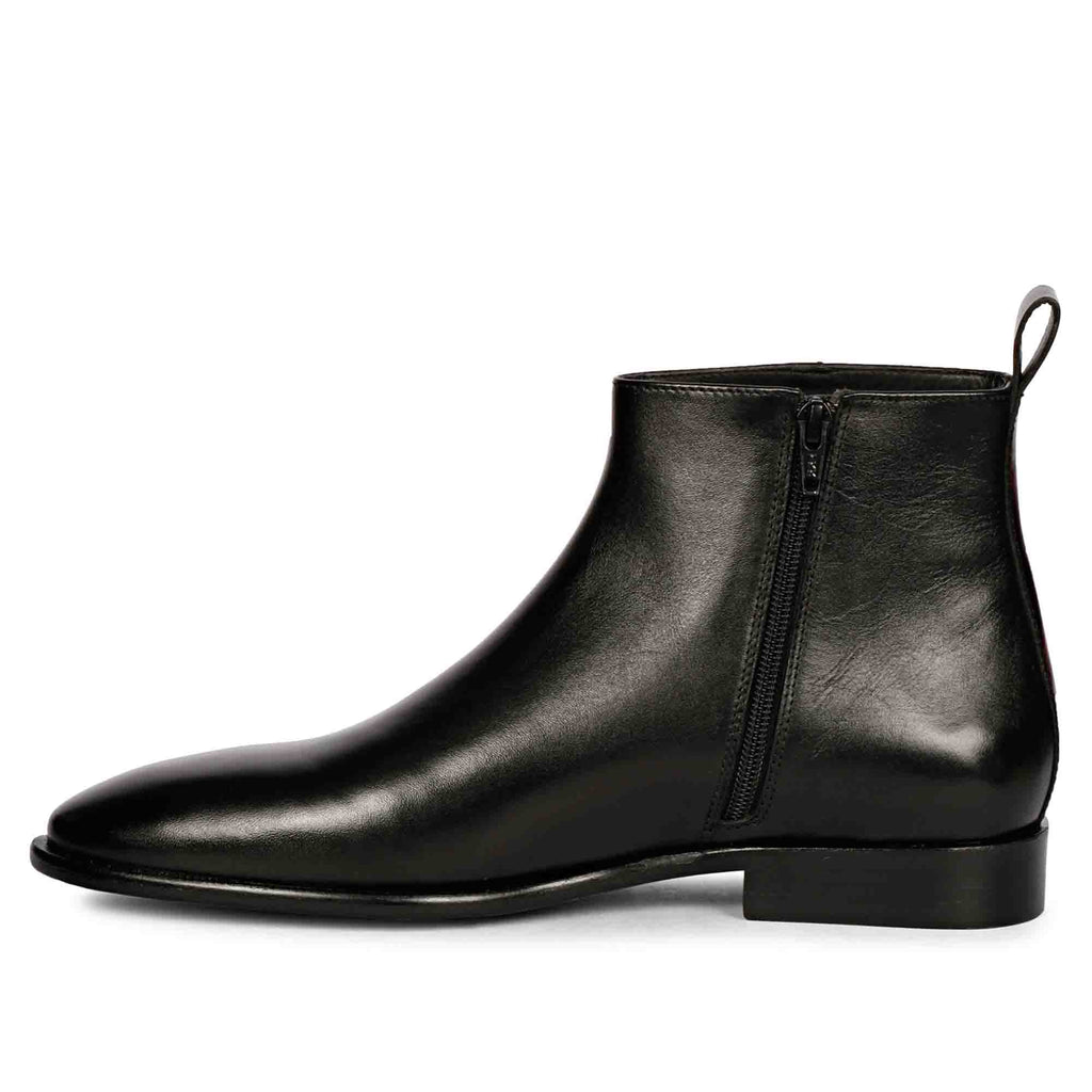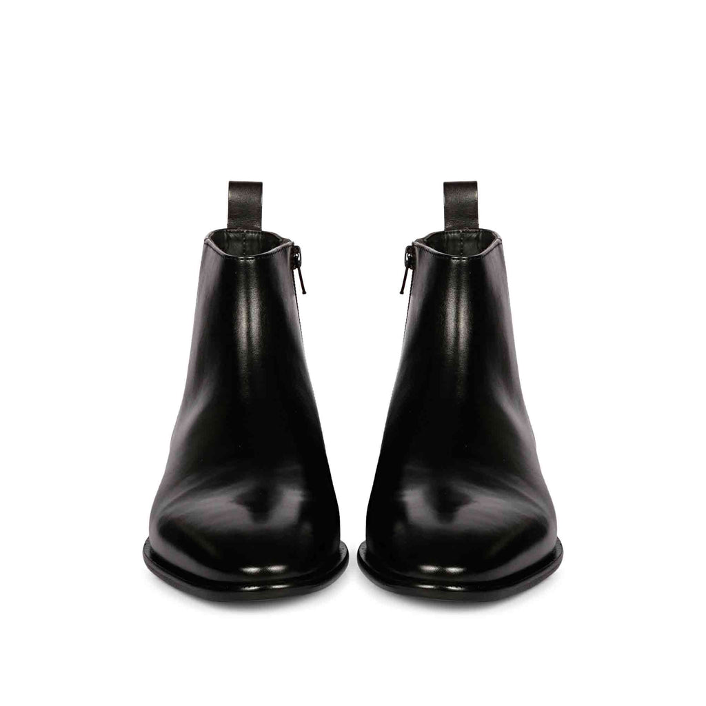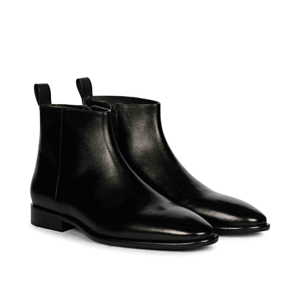 A pair of handcrafted black leather ankle boot. Featuring inside zip and a pull tab to ensure comfortably slip them on and off. Its completed with leather lining and padded leather footbed. The zipper boot sit on a Italian leather sole.