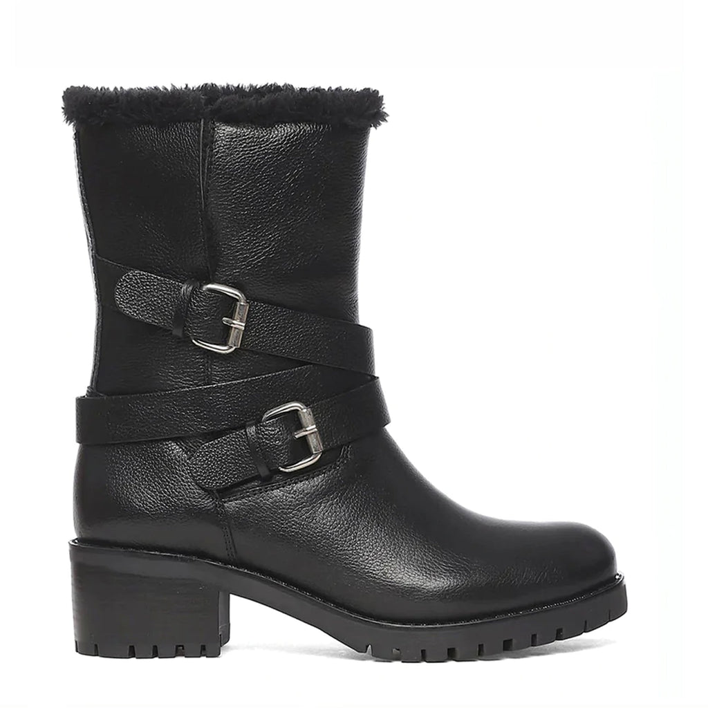 Saint Theresa Buckle Decorative High Ankle Black Leather Boots