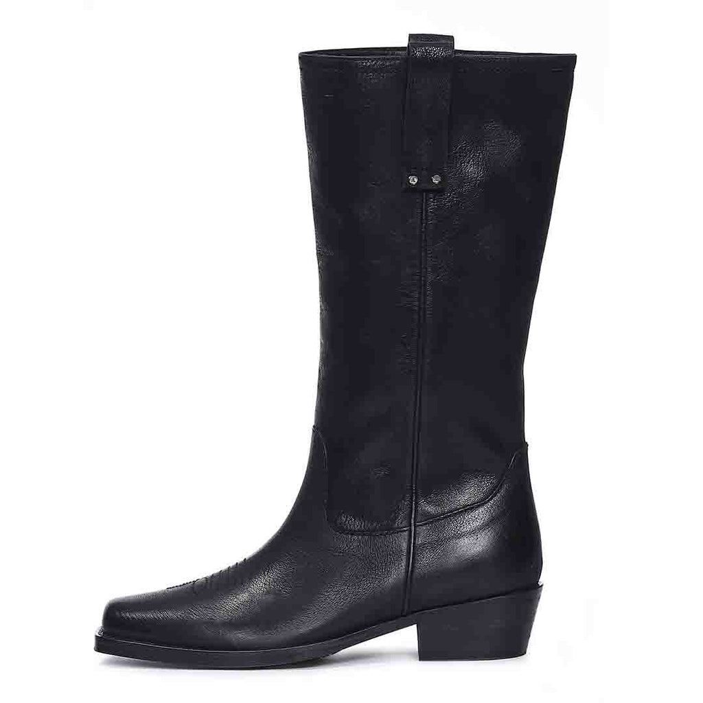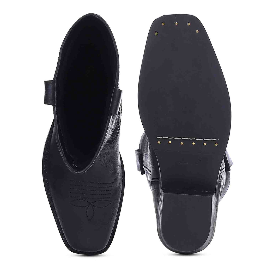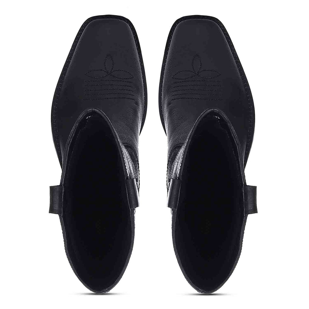 A pair of Saint Valery black leather handcrafted calf boot that comes with a breathable leather shaft for superior comfort and irresistible frame. Making your walk about town a fashionably easy one.